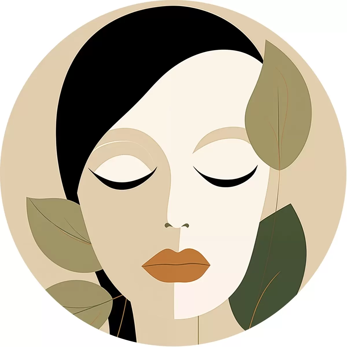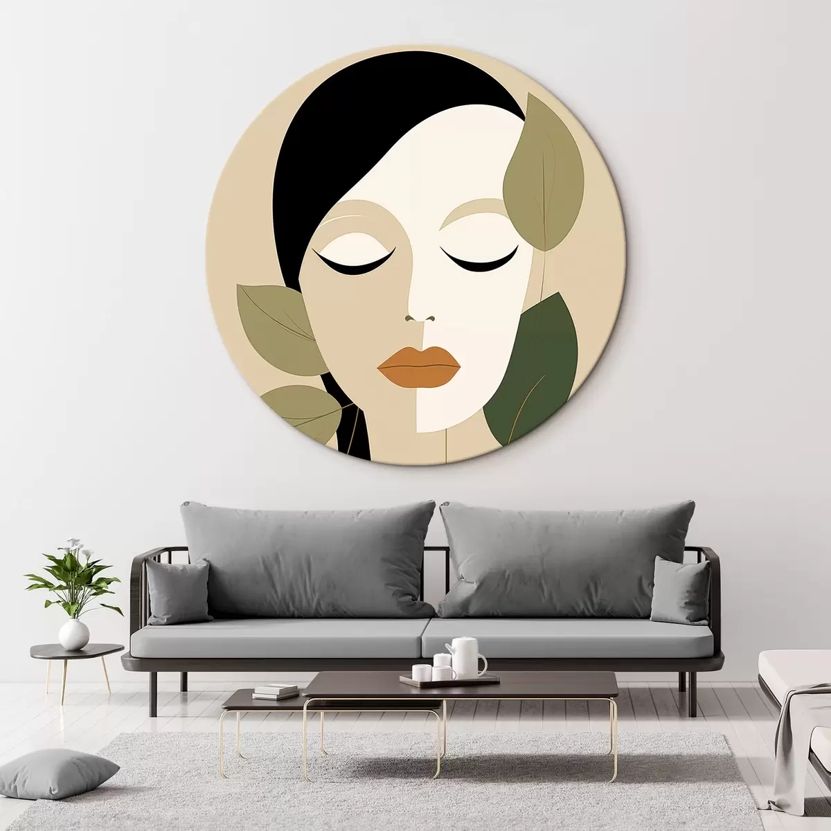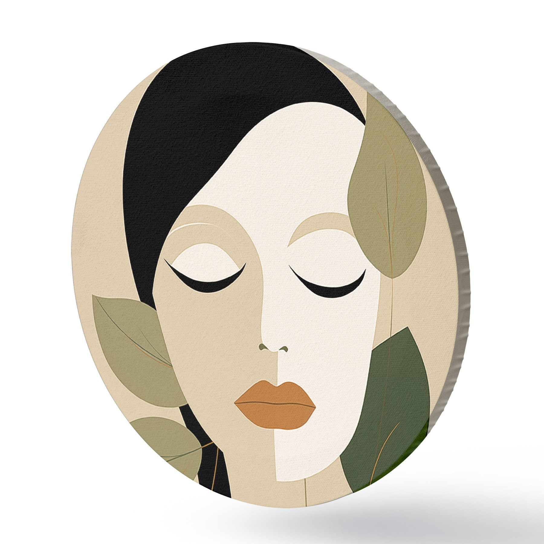 Apaļas gleznas Meitene ar lapām r45389