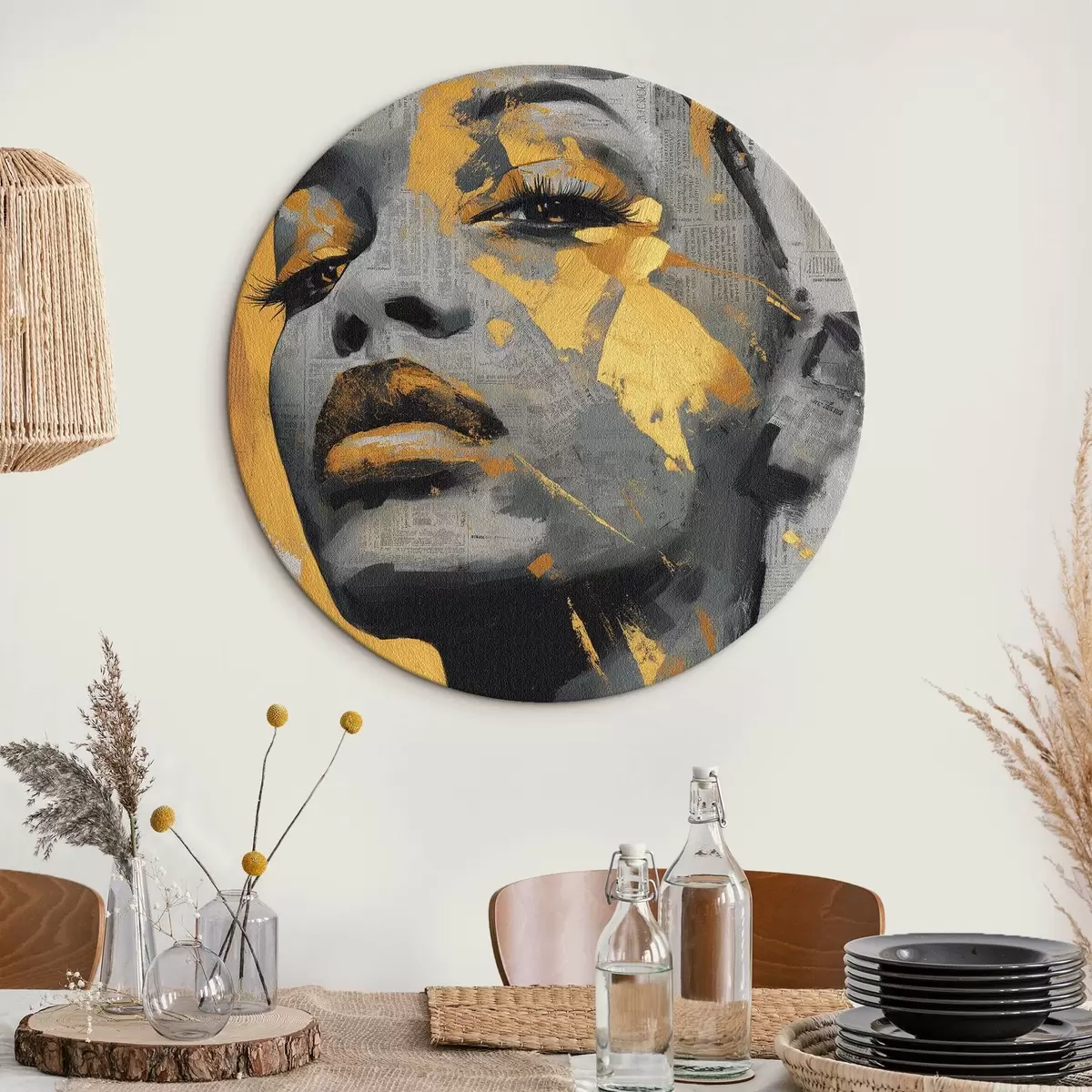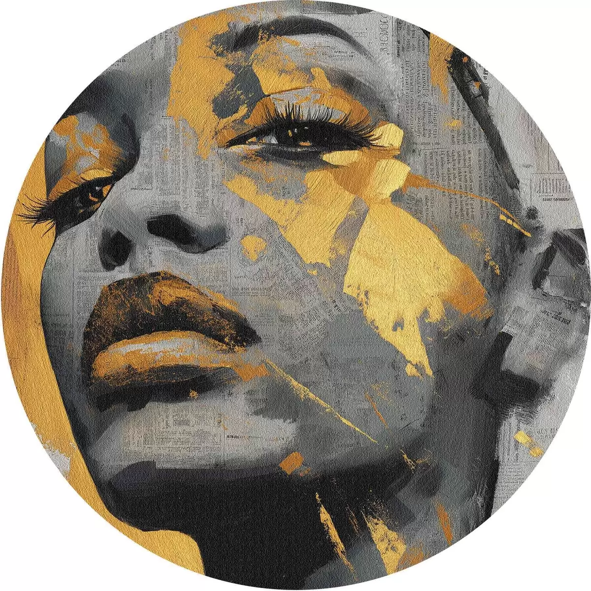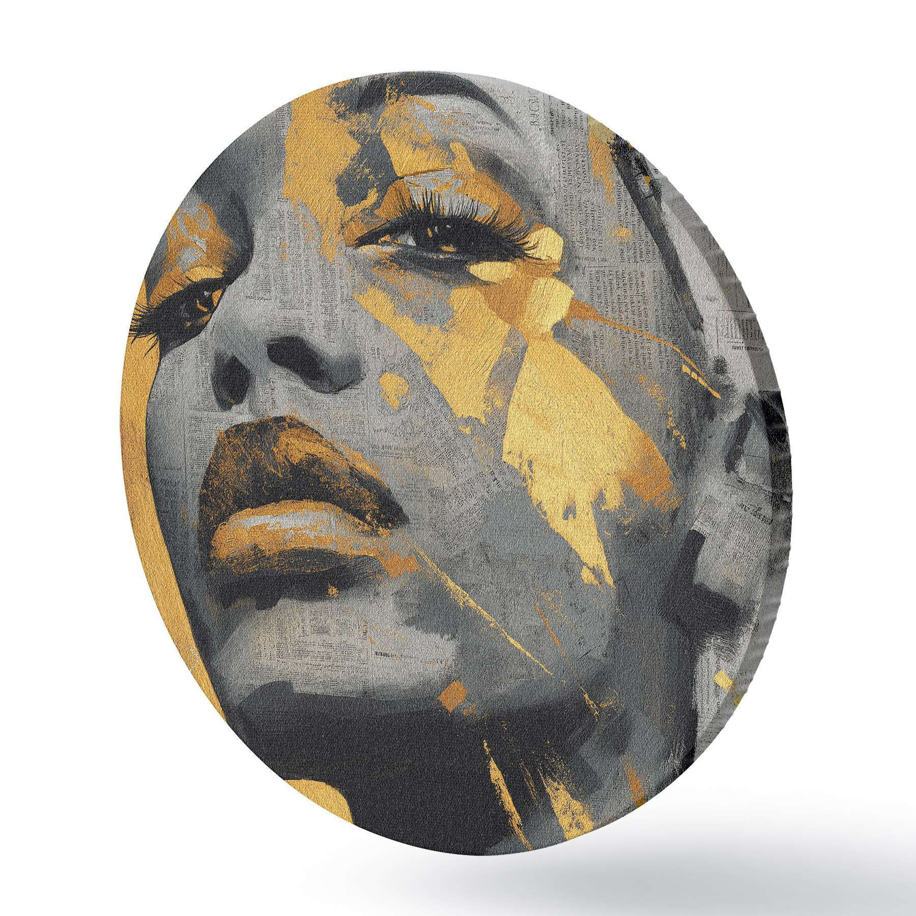 Apaļas gleznas Jauktu mediju portrets ar avīžu fragmentiem un dekoratīviem otas triepieniem r45419