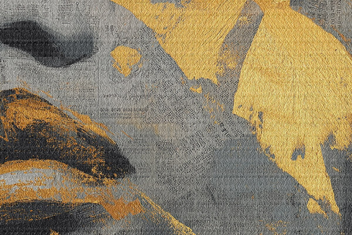 Attēls Jauktu mediju portrets ar avīžu fragmentiem un dekoratīviem otas triepieniem Nr r45419