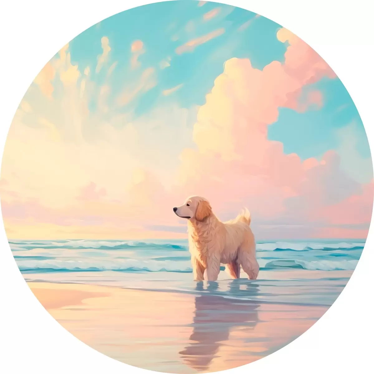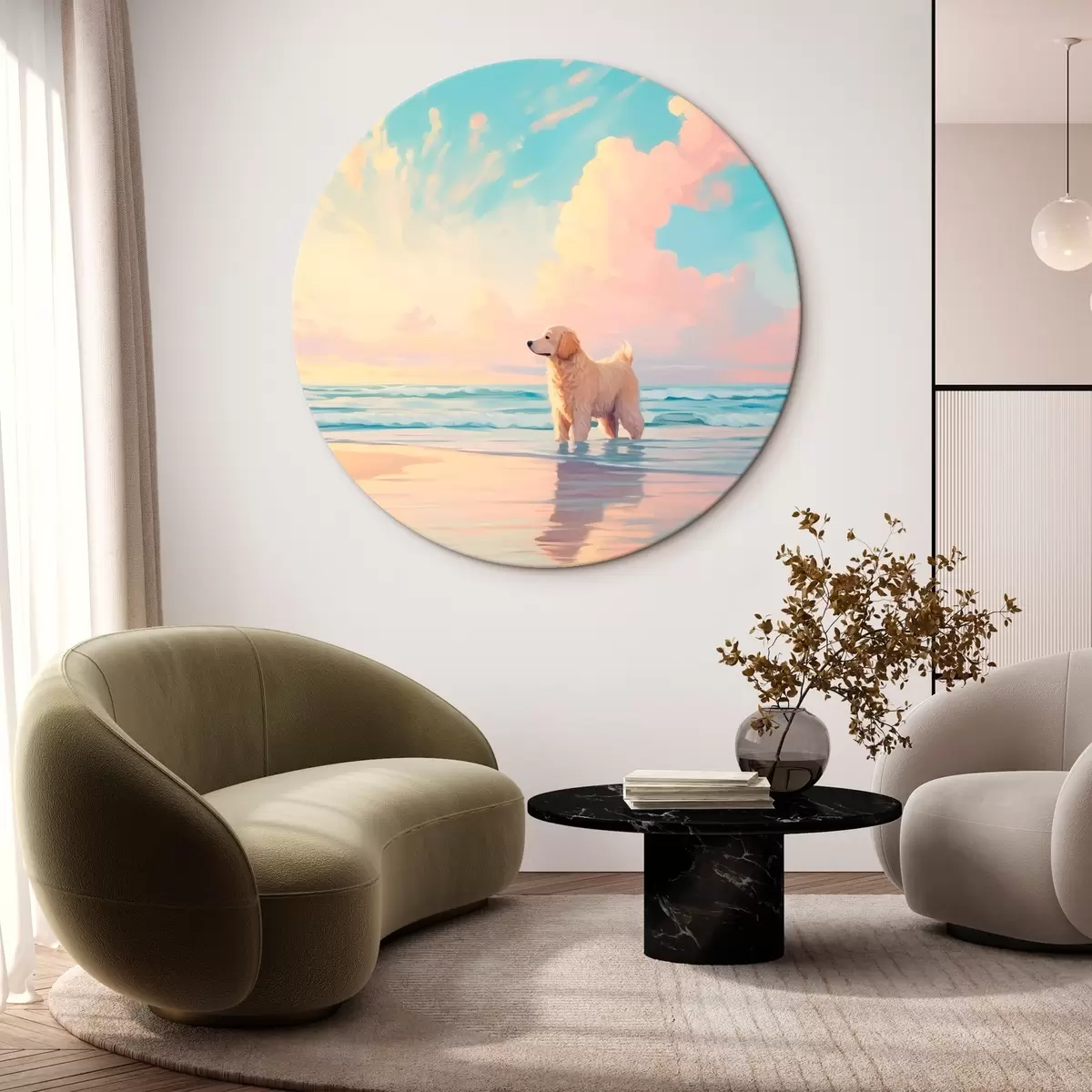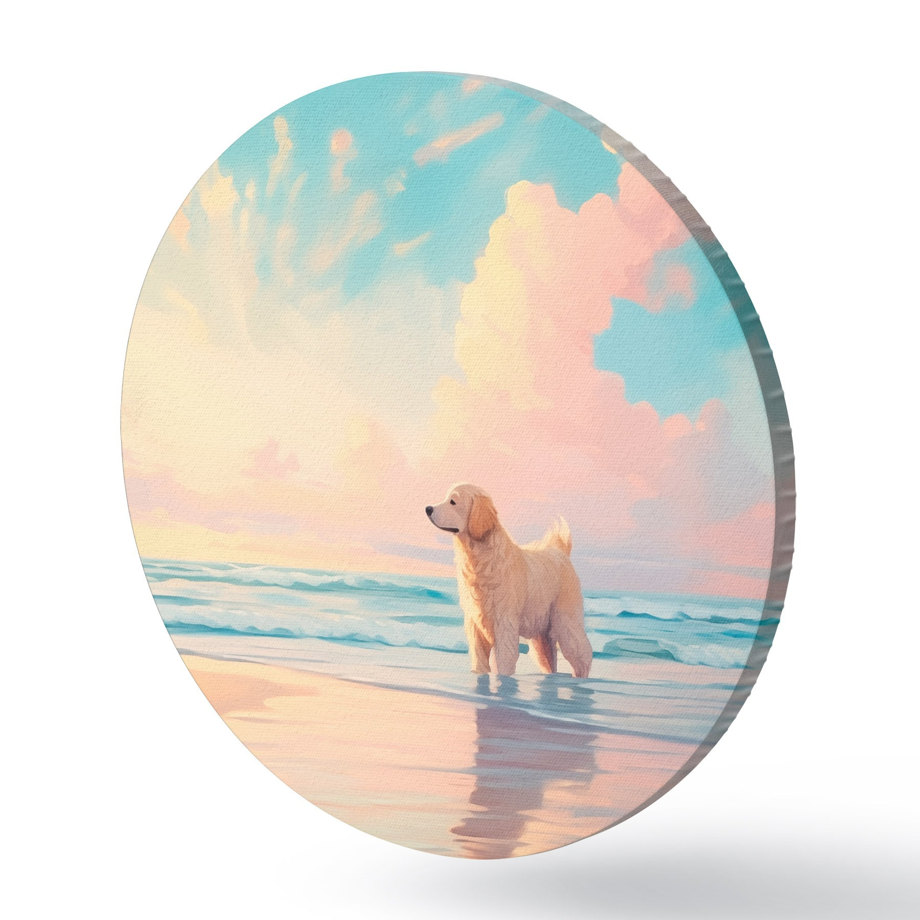 Apaļas gleznas Retrīvers jūras krastā r45425