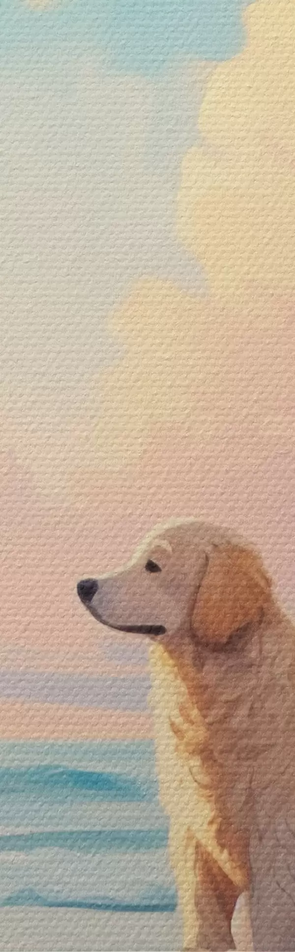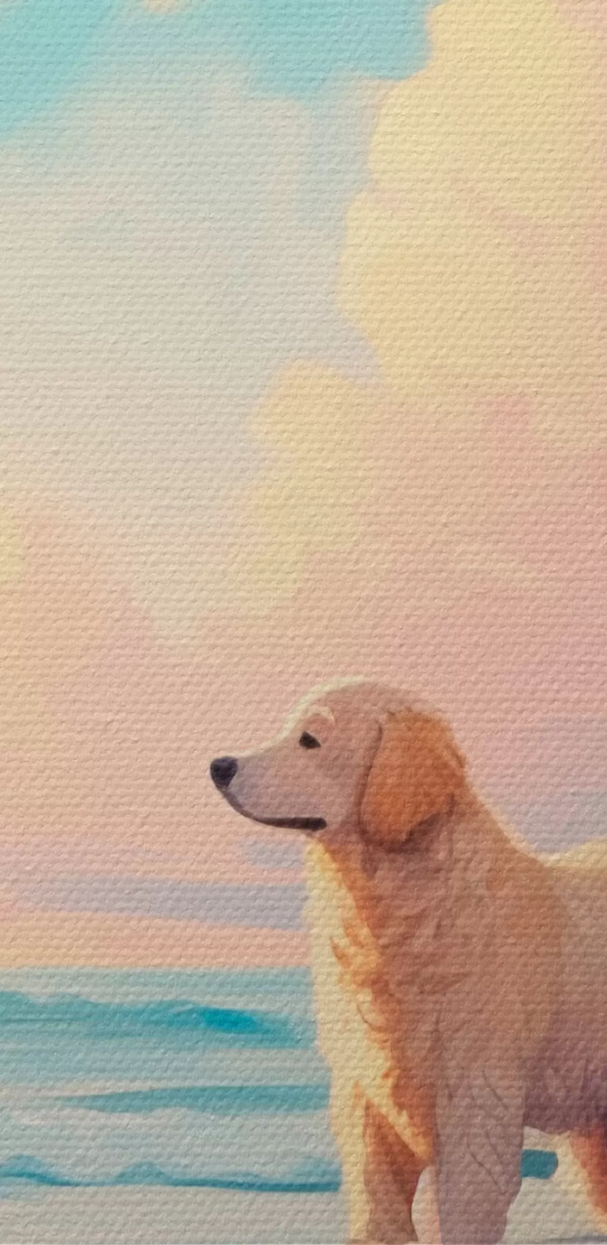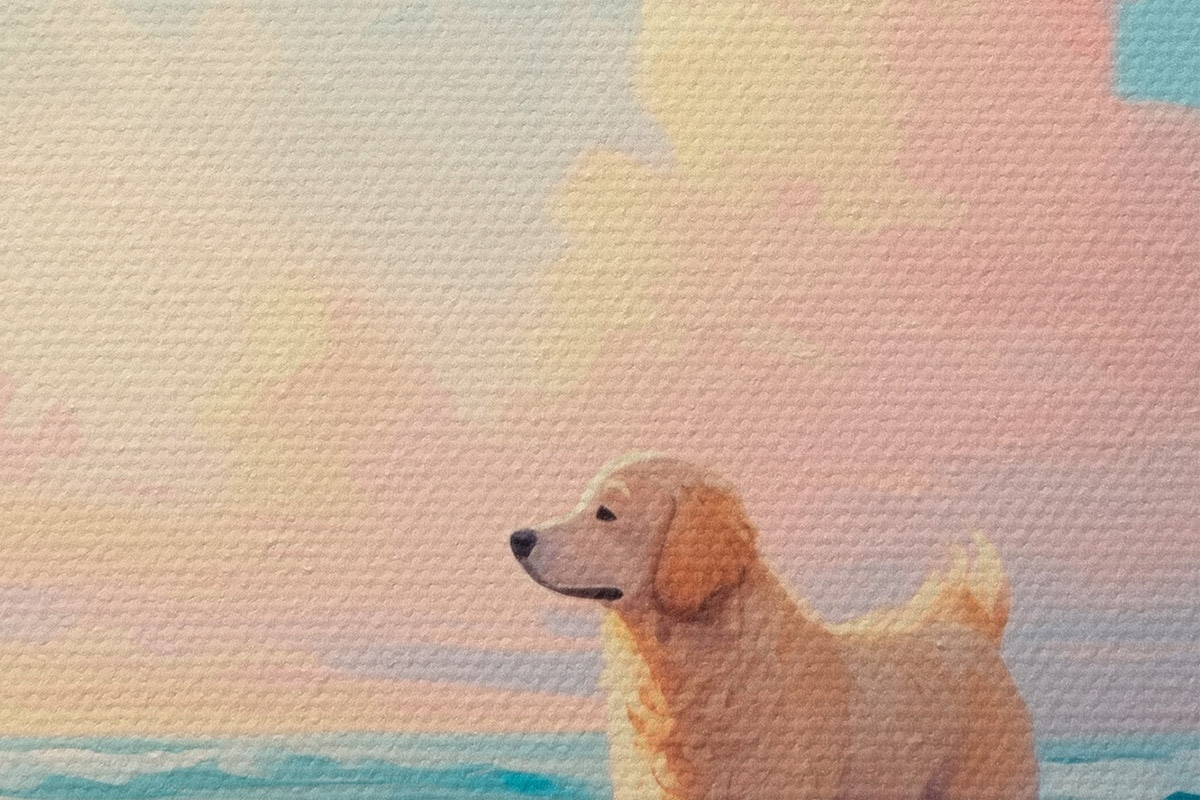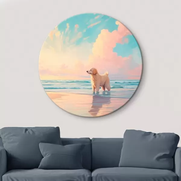 Apaļas gleznas Retrīvers jūras krastā r45425