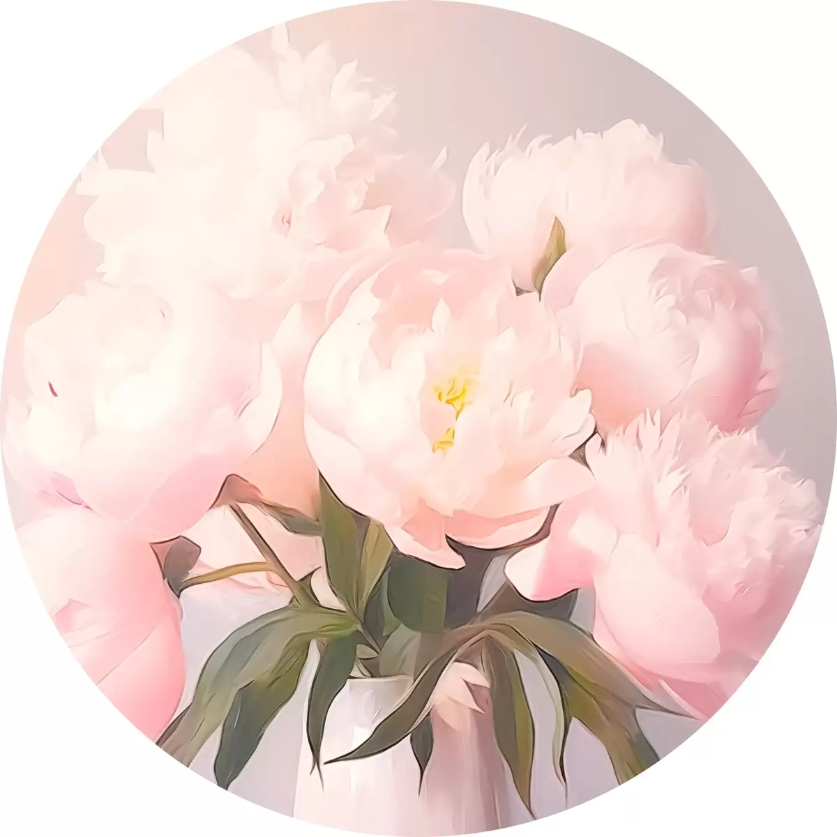 Apaļas gleznas Peoniju pušķis vāzē r45432