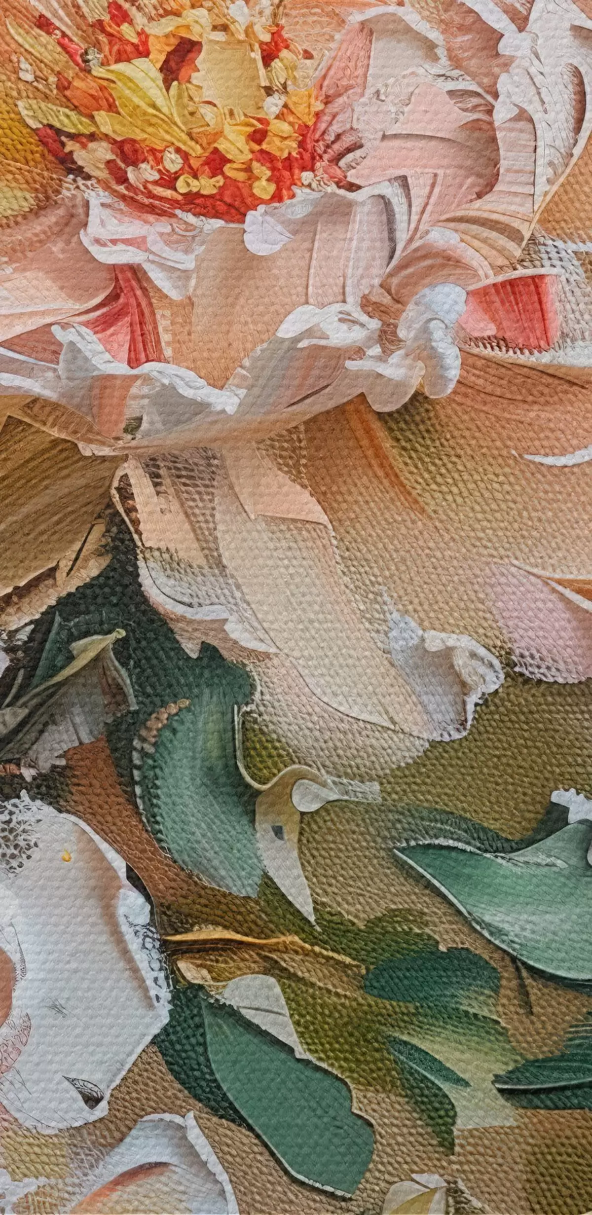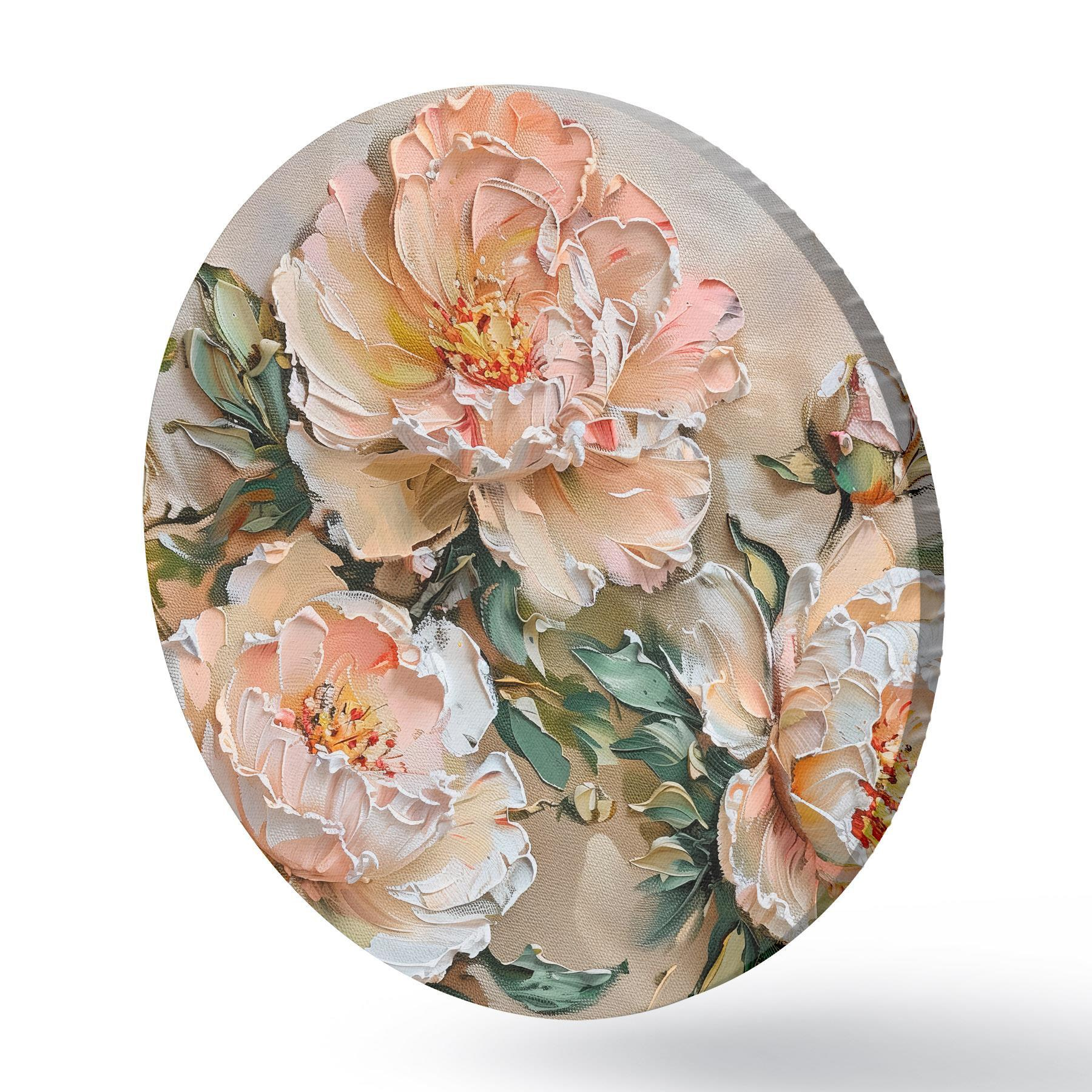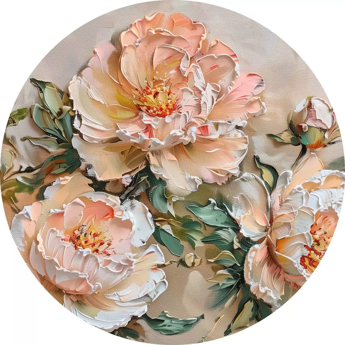 Apaļas gleznas Peoniju impasto imitācija r45447