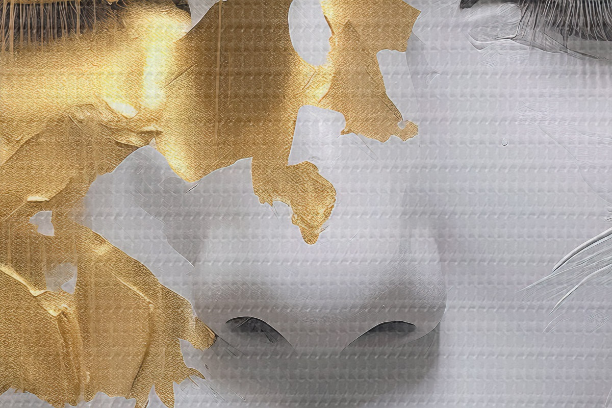 Smalkais diegu pinums uz šī audekla atgādina profesionālu mākslinieku audeklu virsmu.