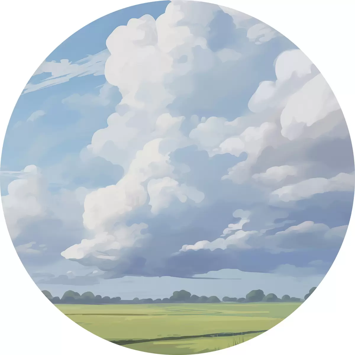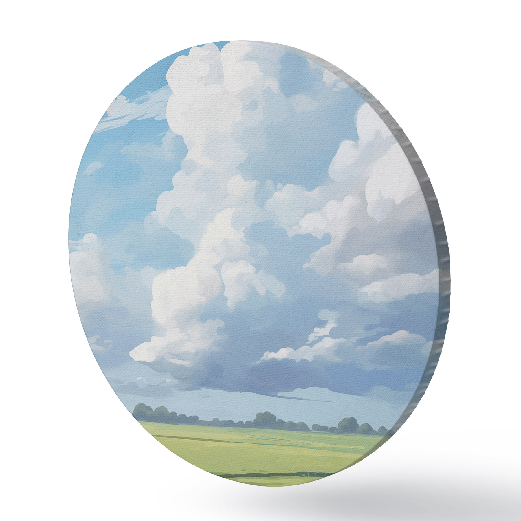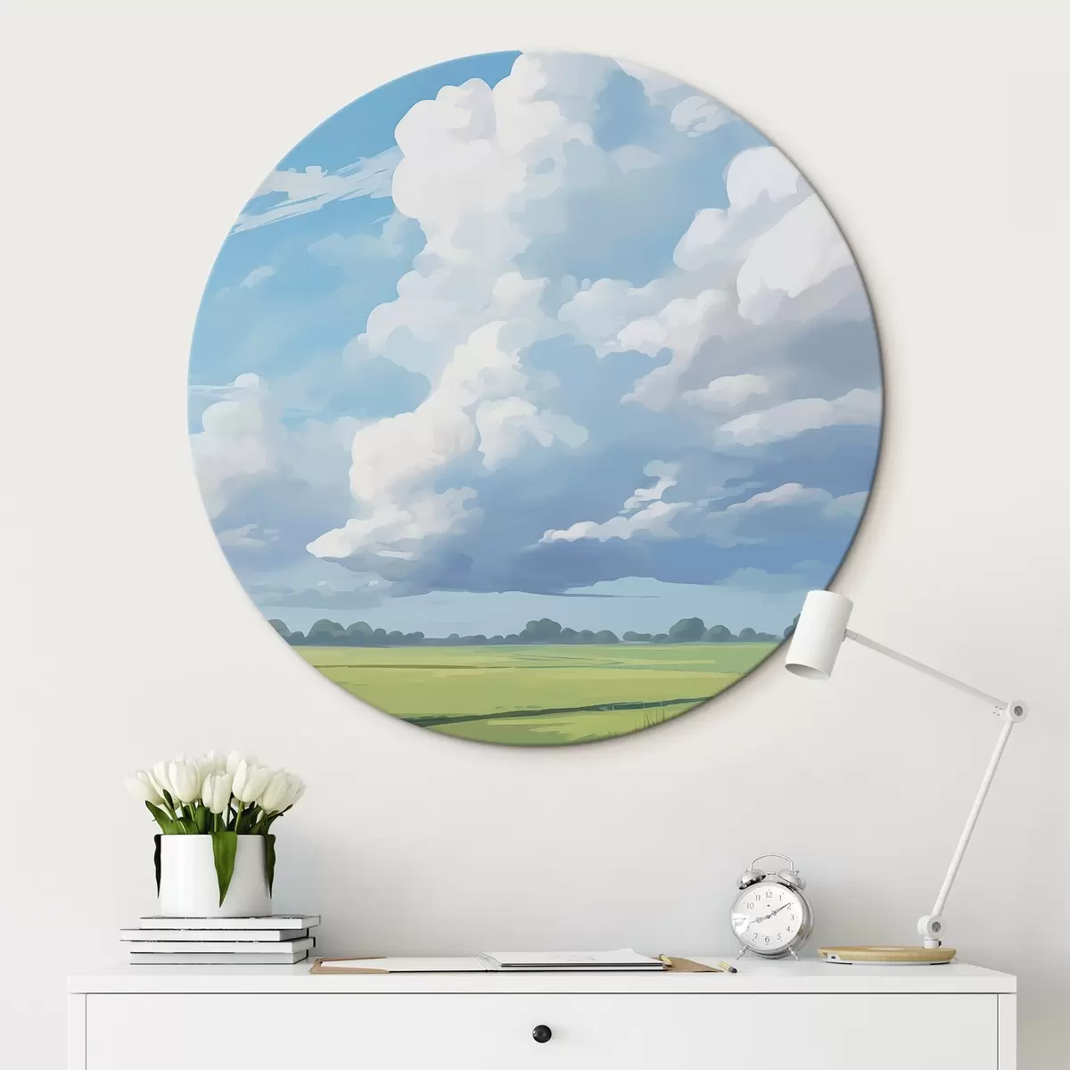 Apaļas gleznas Laukums pret debesīm ar milzīgiem mākoņiem r45453