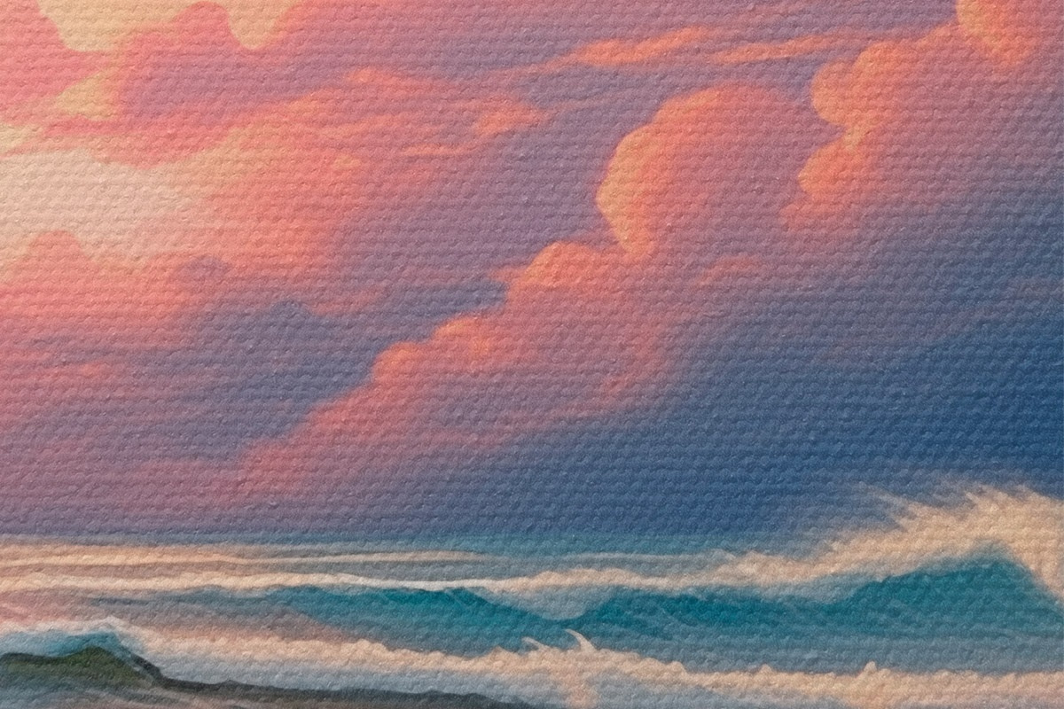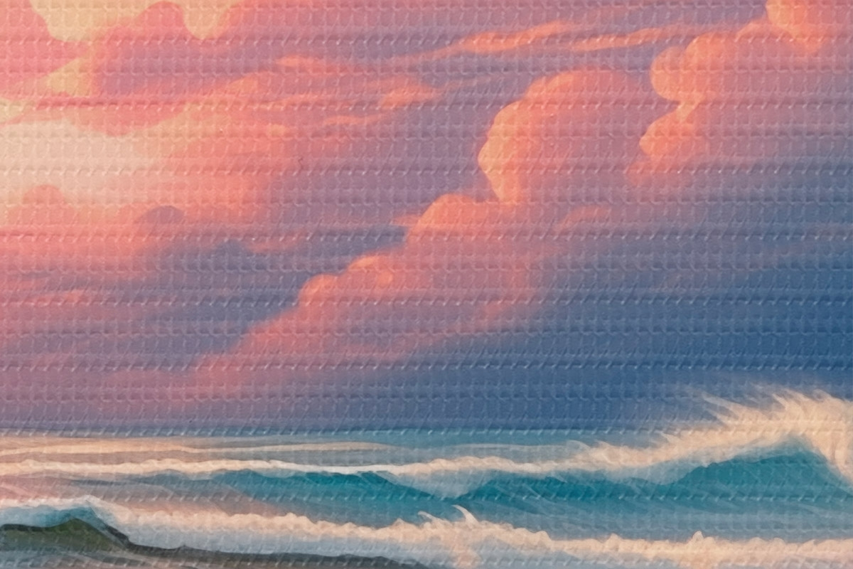 Smalkais diegu pinums uz šī audekla atgādina profesionālu mākslinieku audeklu virsmu.