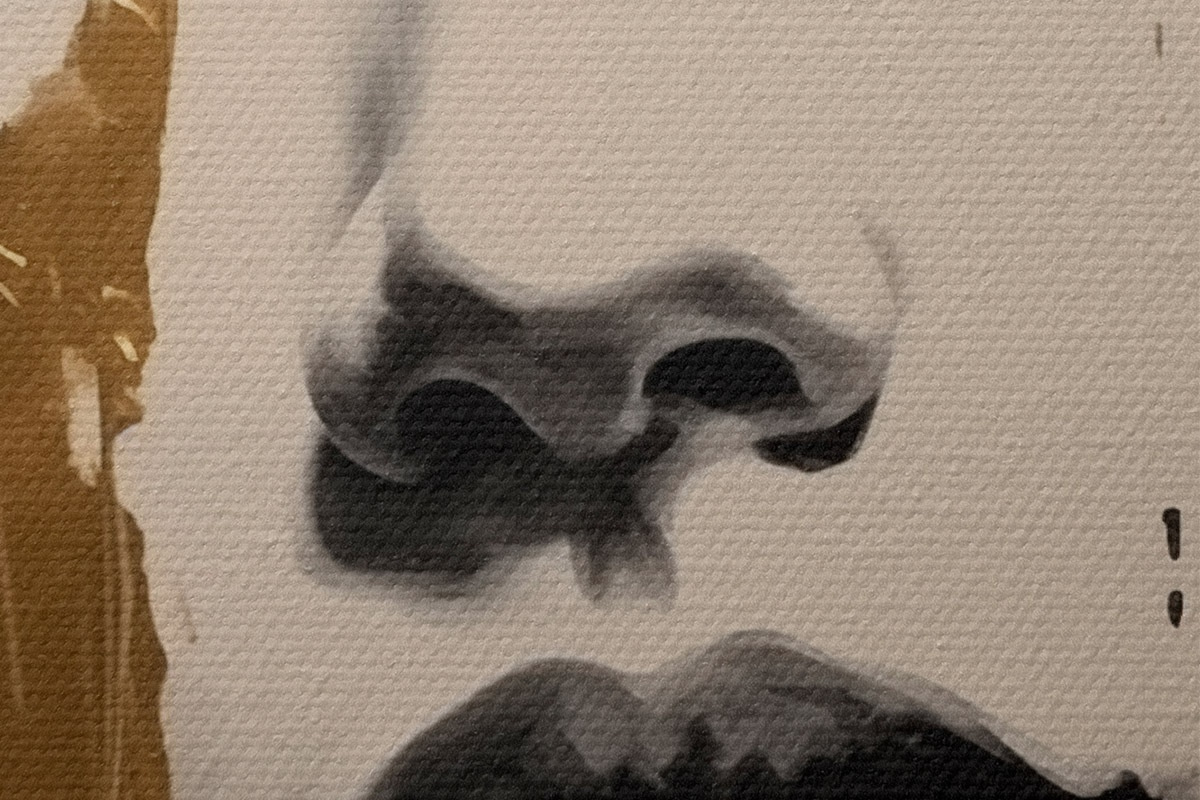 Smalkais diegu pinums uz šī audekla atgādina profesionālu mākslinieku audeklu virsmu.
