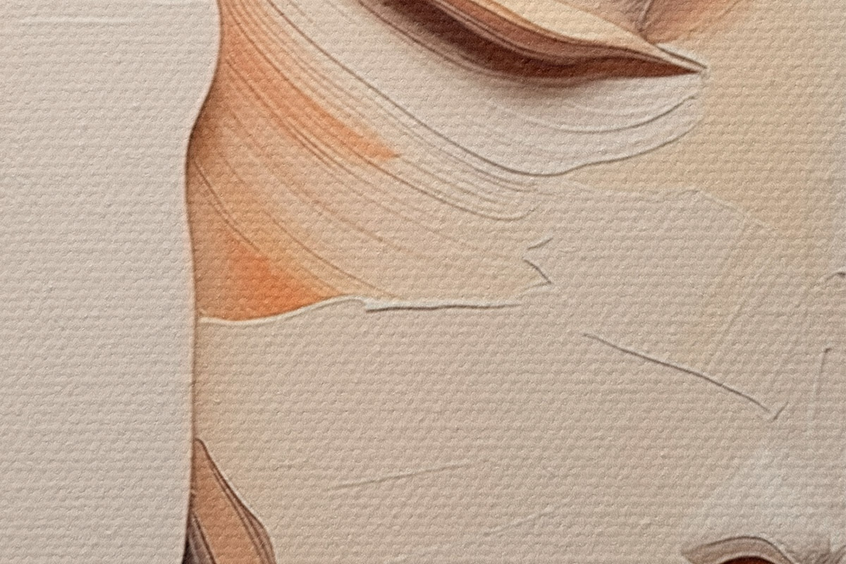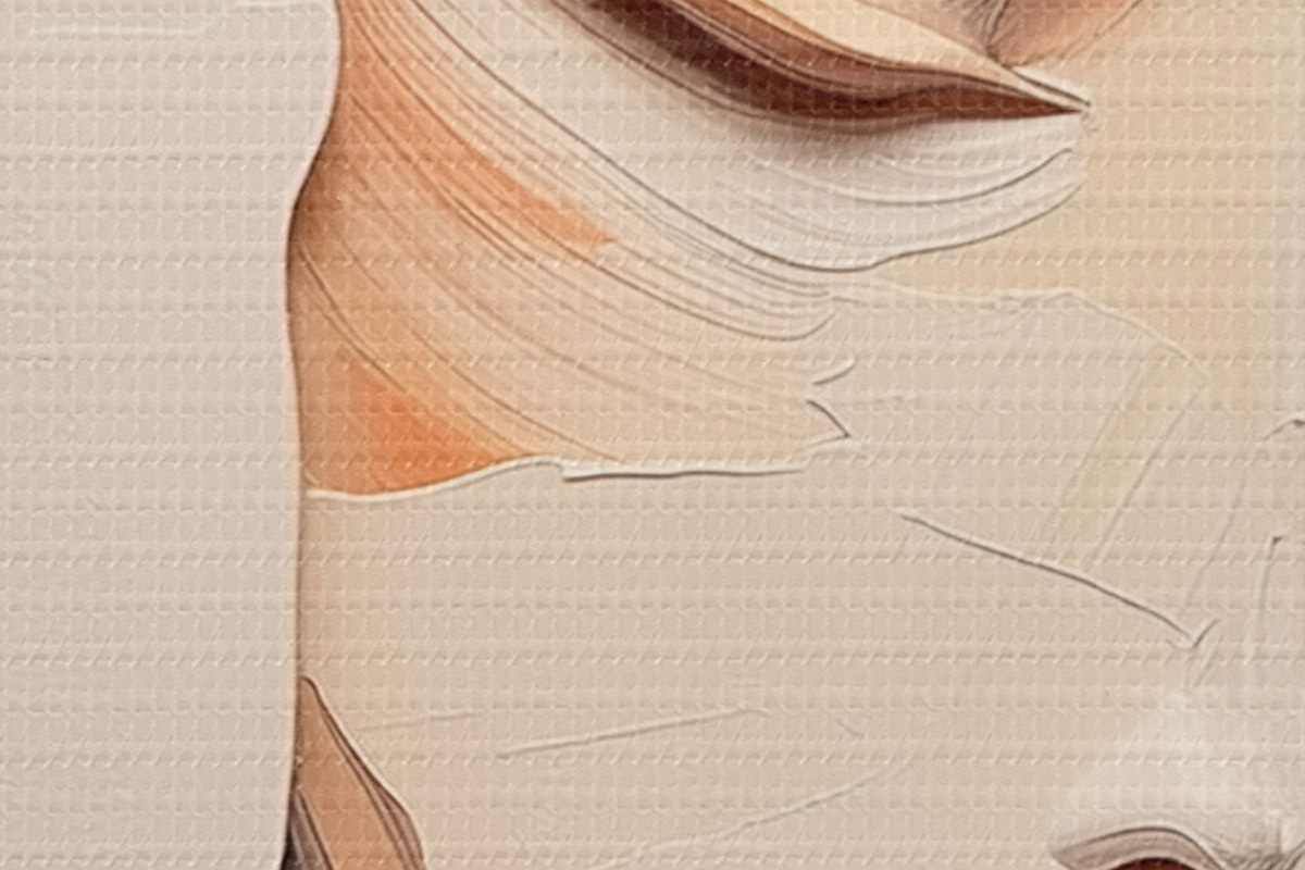 Smalkais diegu pinums uz šī audekla atgādina profesionālu mākslinieku audeklu virsmu.
