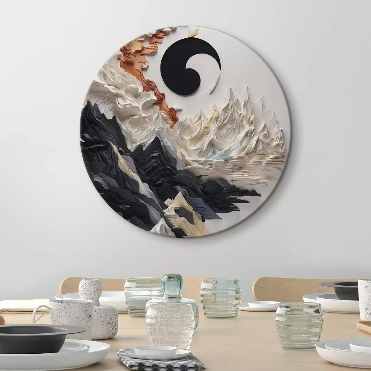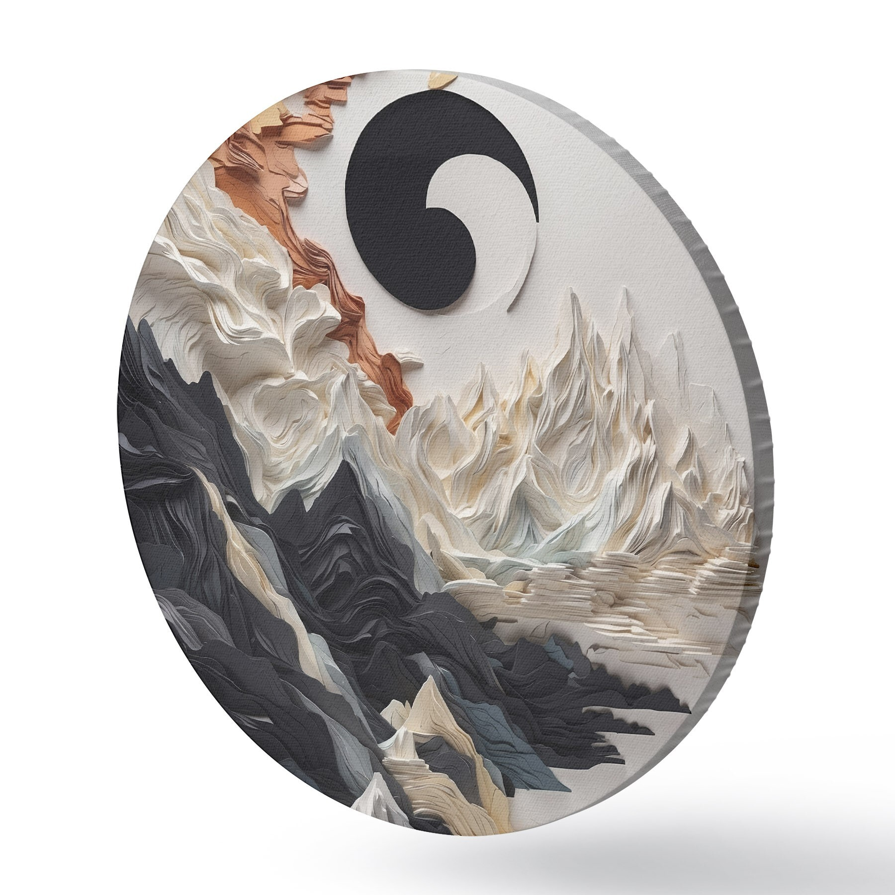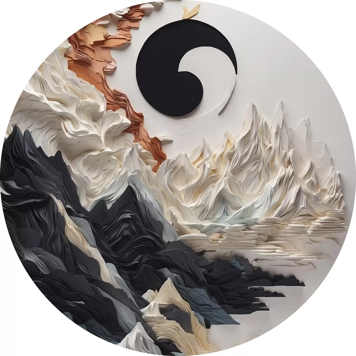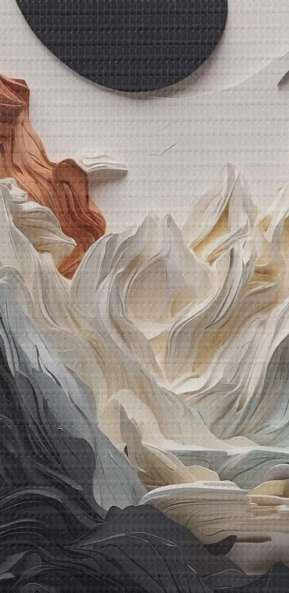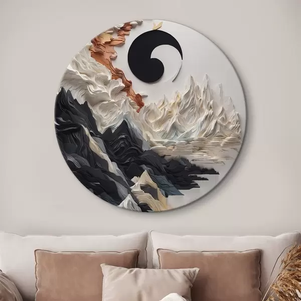 Apaļas gleznas Abstrakta ainava ar kalniem papīra stilā r45482