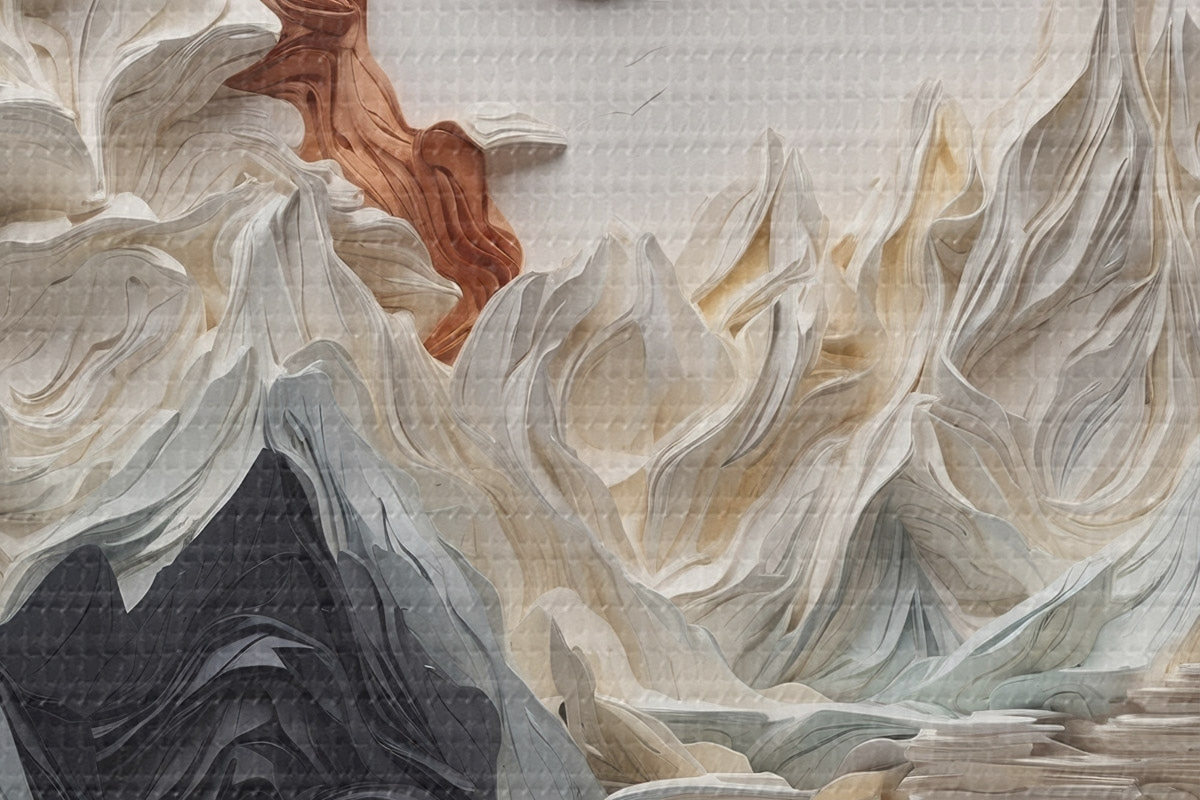 Attēls Abstrakta ainava ar kalniem papīra stilā Nr r45482