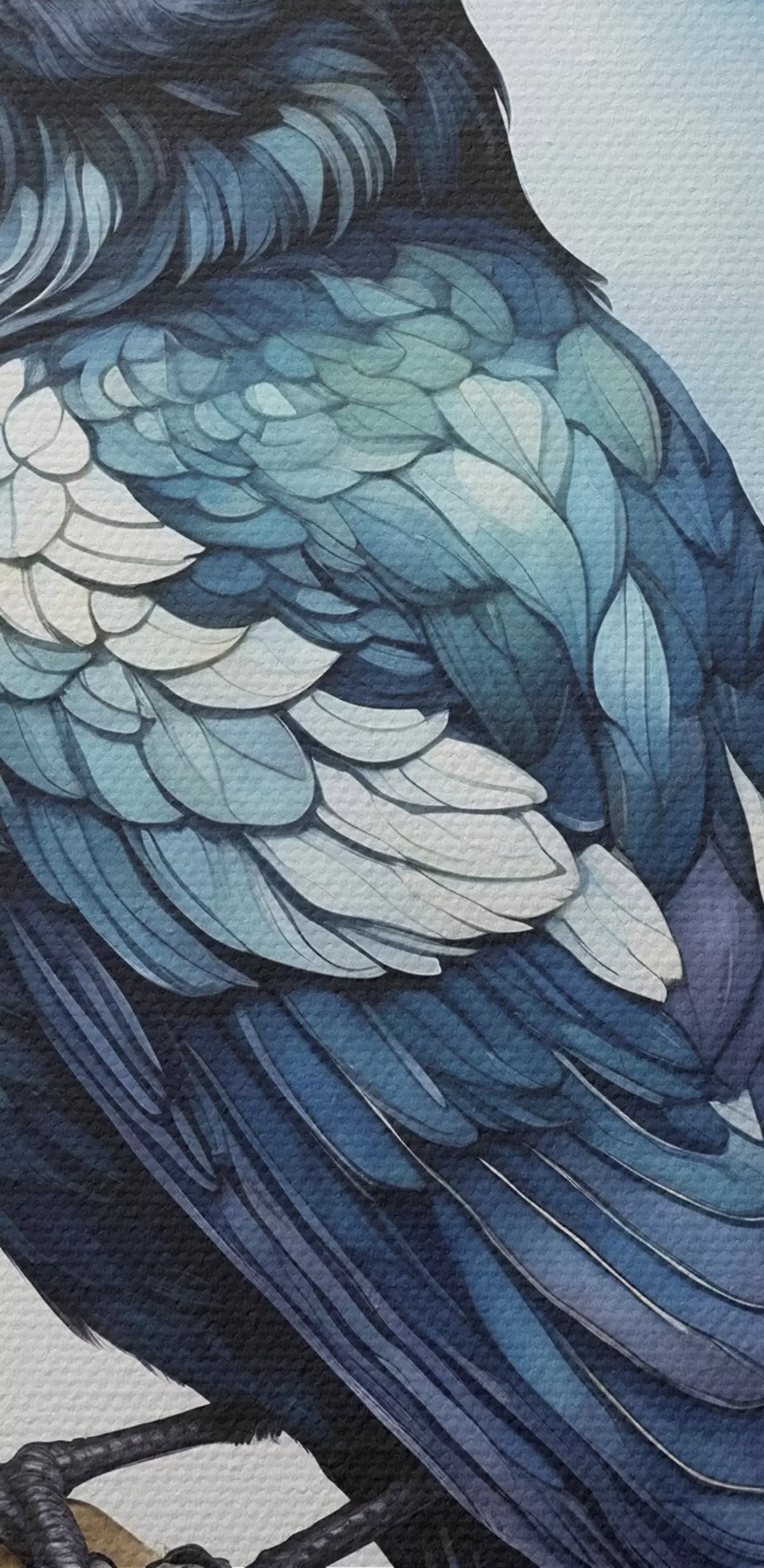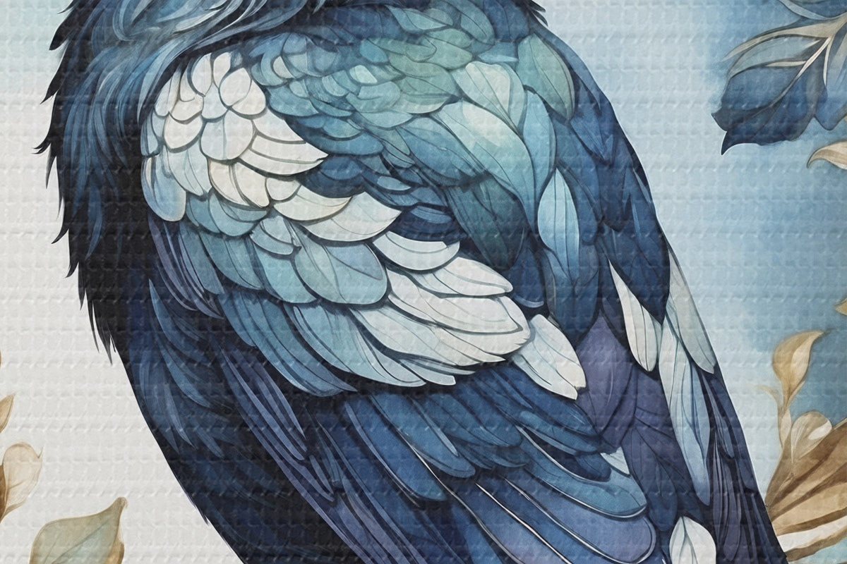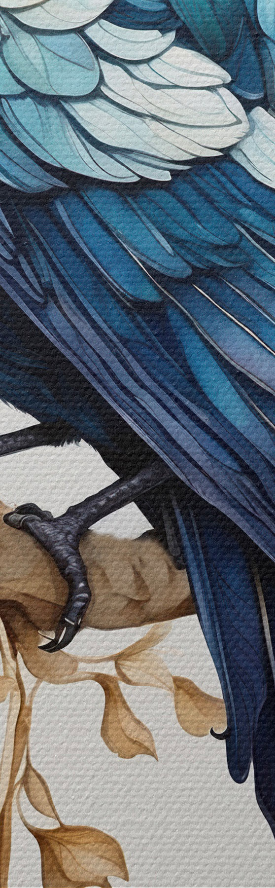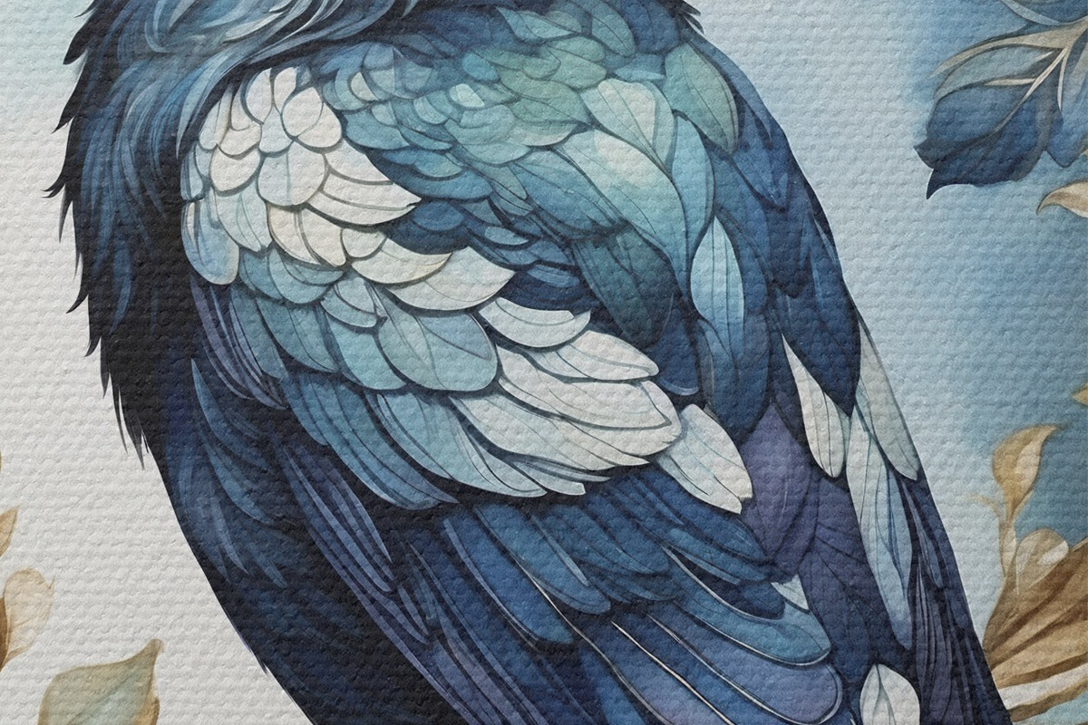 Attēls Zils putns uz zara ar akvareļa stila lapām Nr r45483