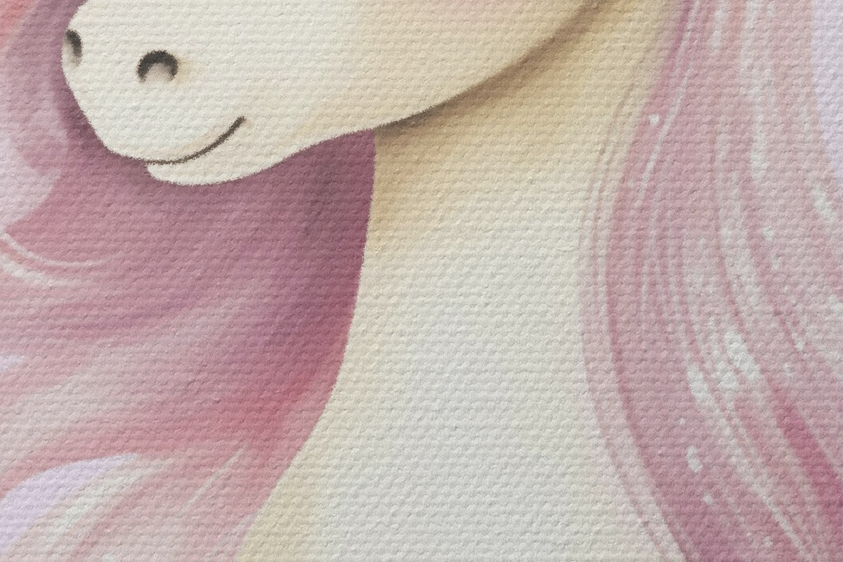 Smalkais diegu pinums uz šī audekla atgādina profesionālu mākslinieku audeklu virsmu.