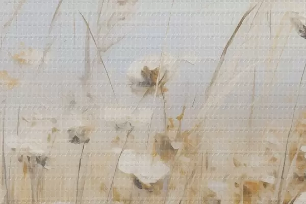 Smalkais diegu pinums uz šī audekla atgādina profesionālu mākslinieku audeklu virsmu.
