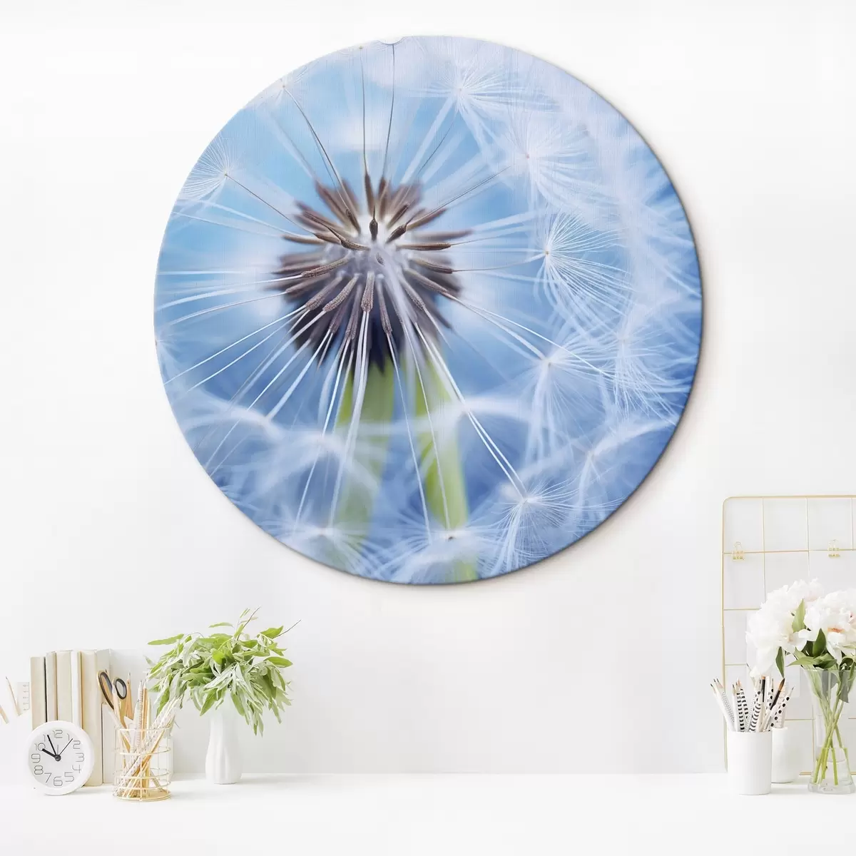 Apaļas gleznas Pieneņu makroattēls uz zila fona r45517