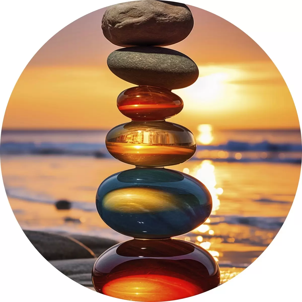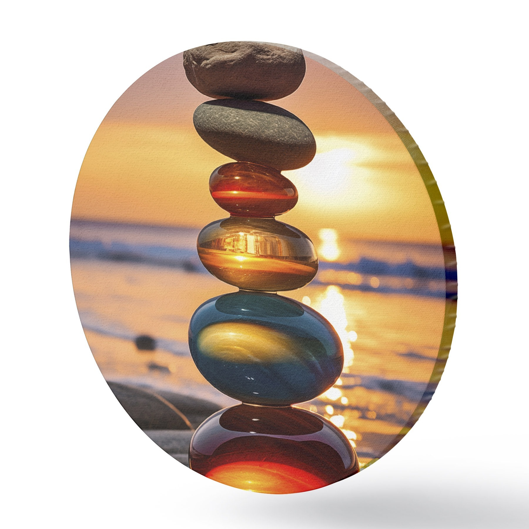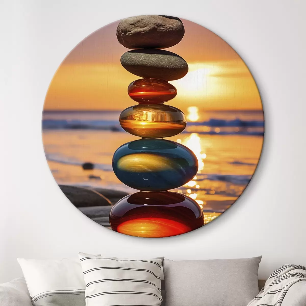 Apaļas gleznas Sakrauti akmeņi saulrieta fonā r45520