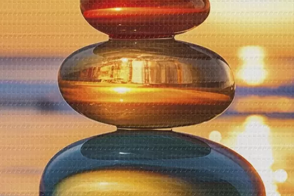 Apaļas gleznas Sakrauti akmeņi saulrieta fonā r45520