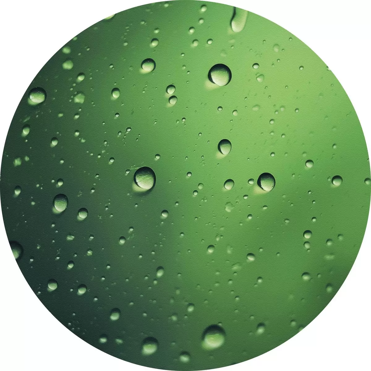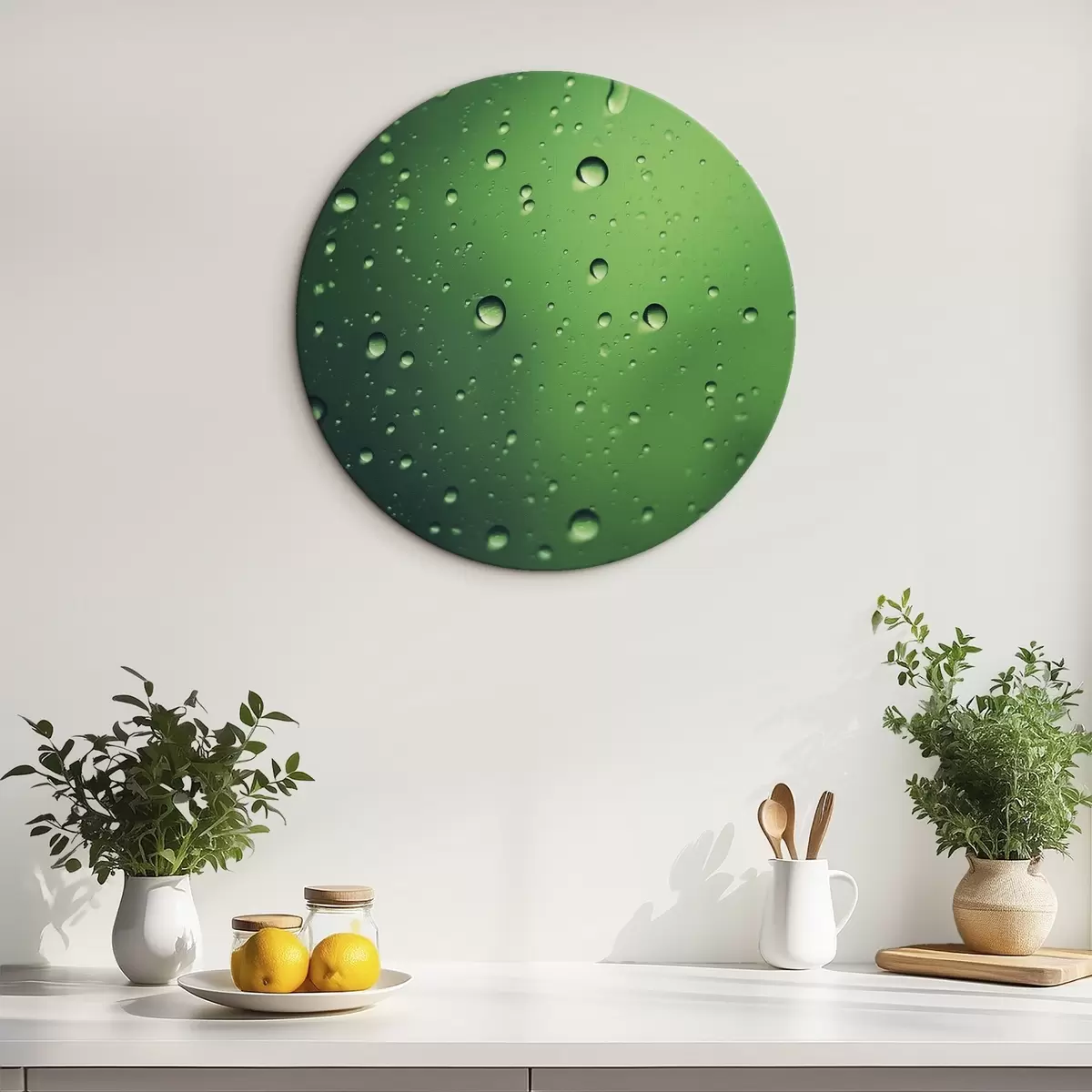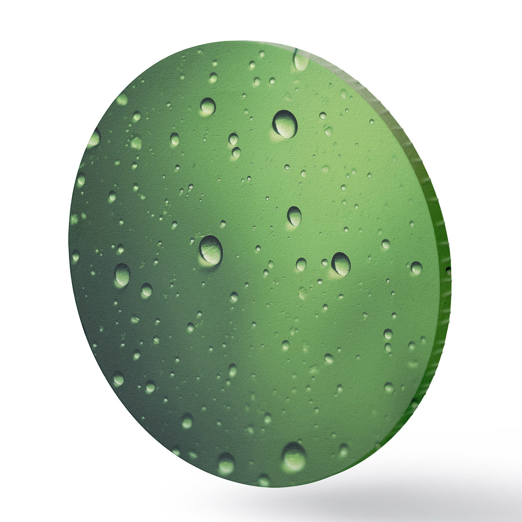 Apaļas gleznas Ūdens pilieni uz zaļa stikla tuvplānā r45521