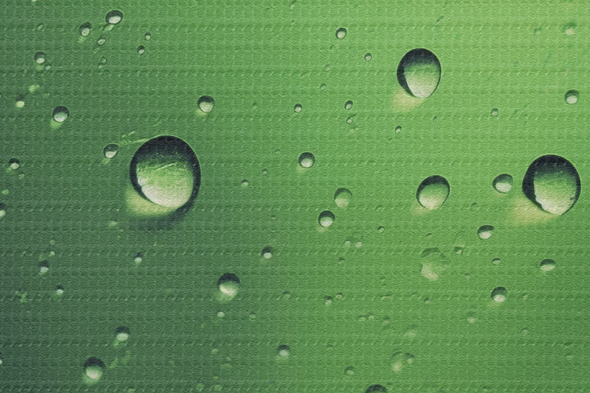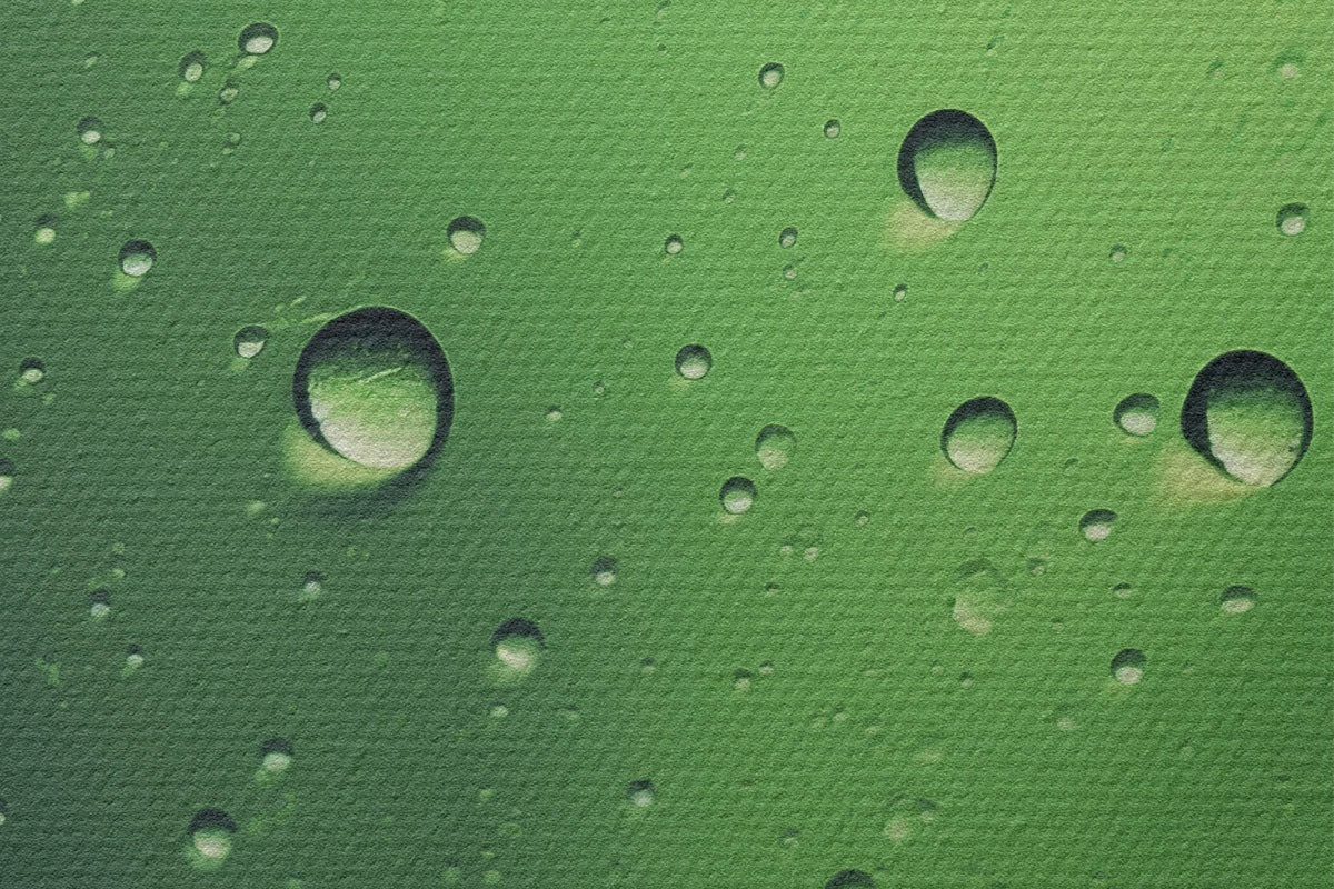 Attēls Ūdens pilieni uz zaļa stikla tuvplānā Nr r45521