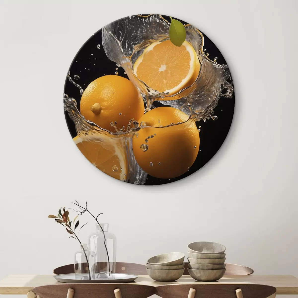 Apaļas gleznas Sulīgi apelsīni ūdens šļakatās r45526
