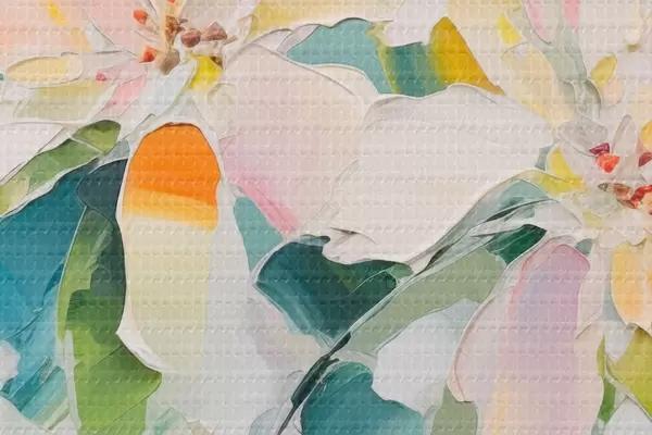 Smalkais diegu pinums uz šī audekla atgādina profesionālu mākslinieku audeklu virsmu.