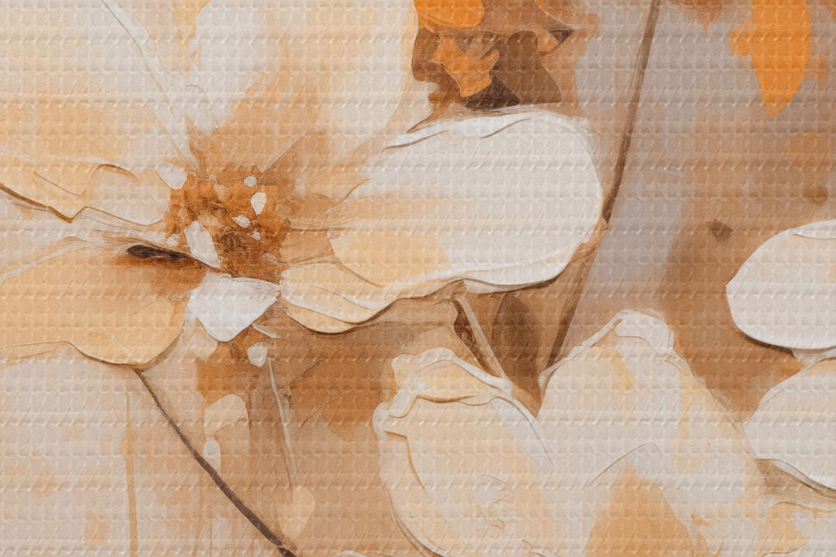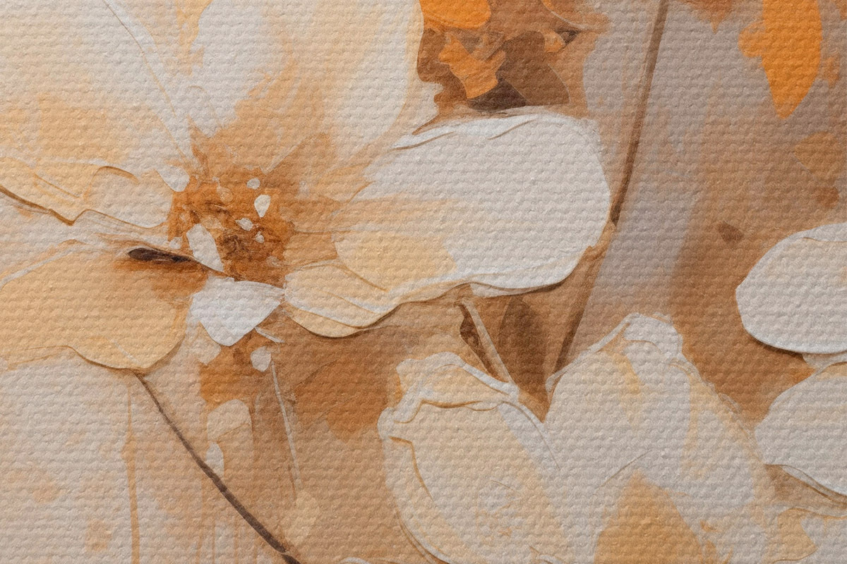Attēls Balti ziedi ar oranžām lapām, maigi triepieni, ziedu kompozīcija, botāniskā māksla Nr r45574