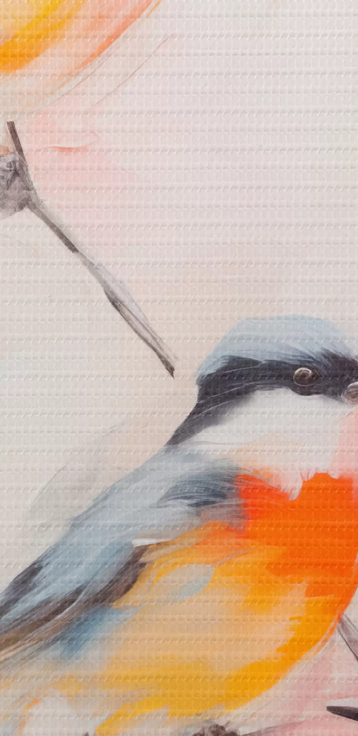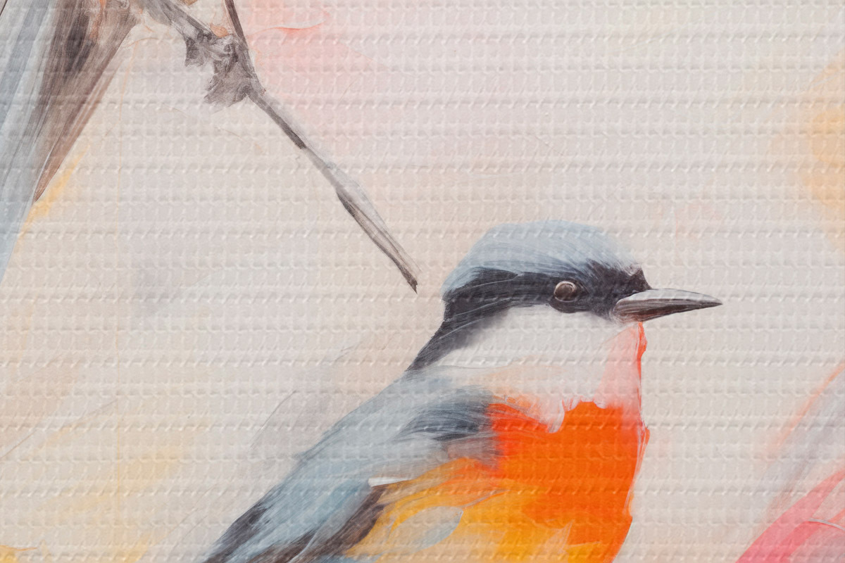 Attēls Putni, kas sēž uz zariem , maigas pasteļtoņi, gaišs fons ar rozā un baltiem toņiem Nr r45577