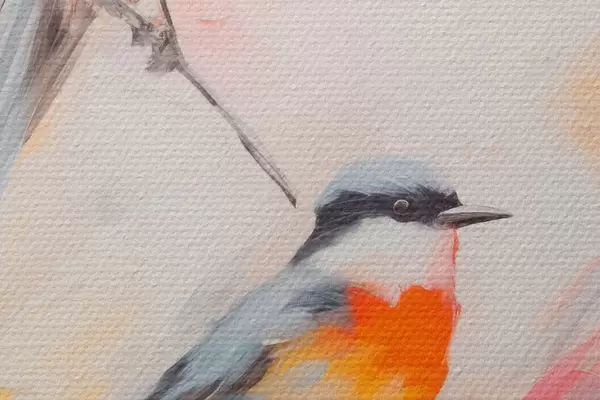 Attēls Putni, kas sēž uz zariem , maigas pasteļtoņi, gaišs fons ar rozā un baltiem toņiem Nr r45577