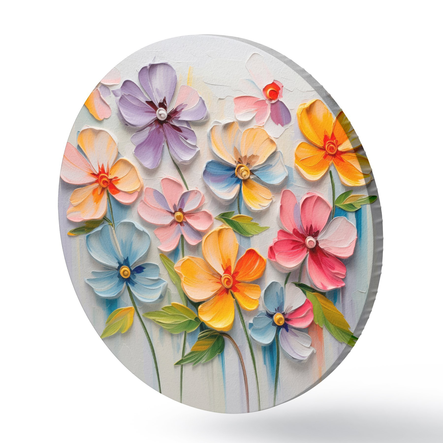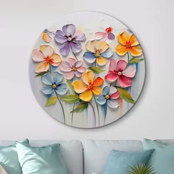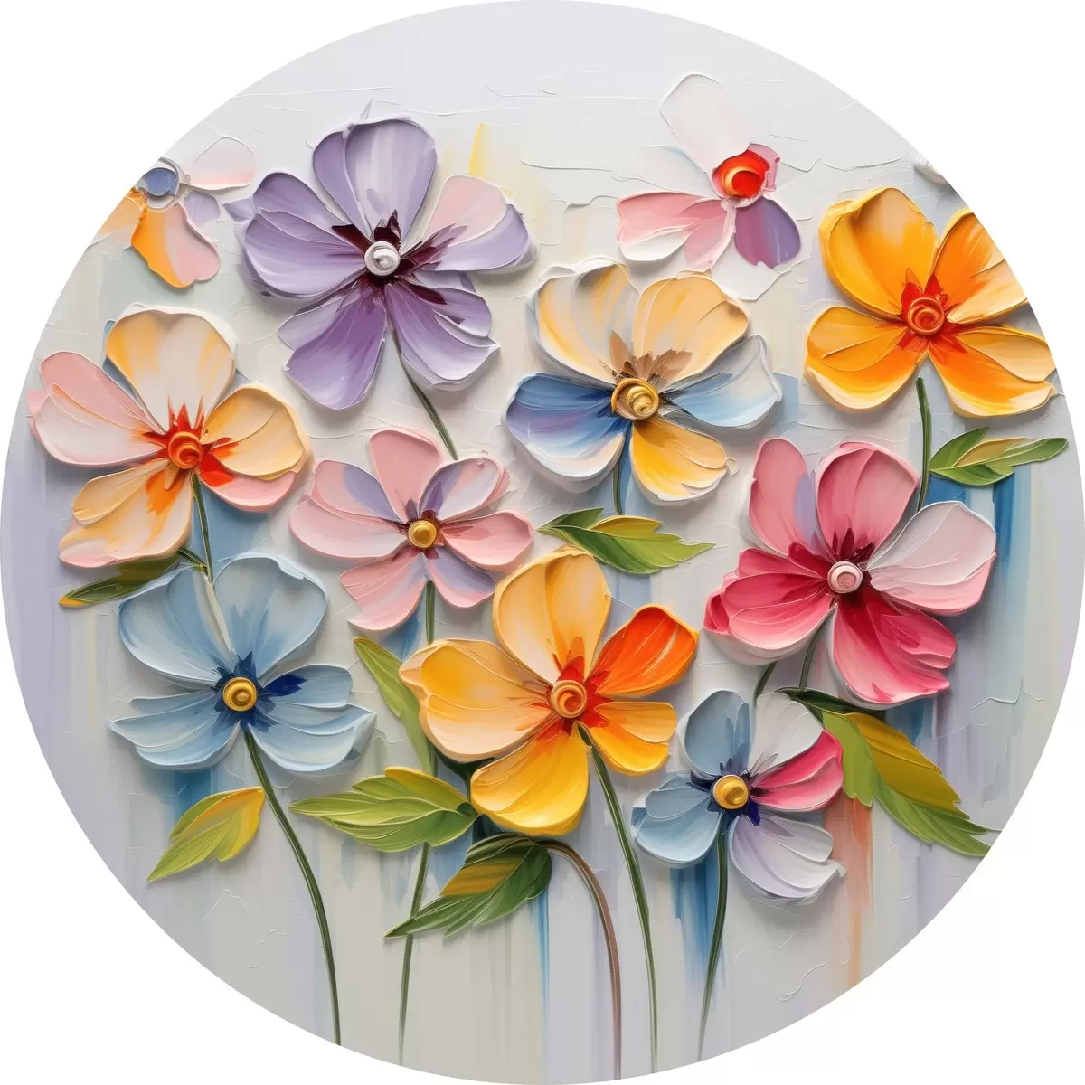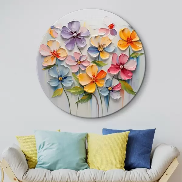Apaļas gleznas Ziedu klusā daba: daudzkrāsaini ziedi impasto tehnikā r45598
