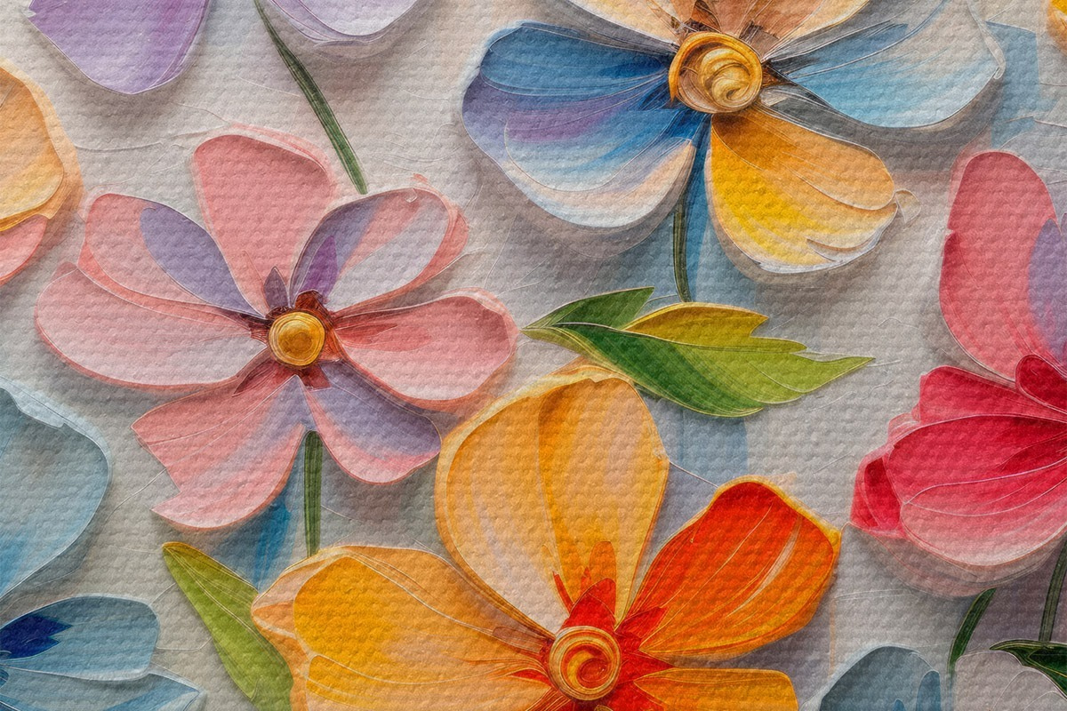 Attēls Ziedu klusā daba: daudzkrāsaini ziedi impasto tehnikā Nr r45598