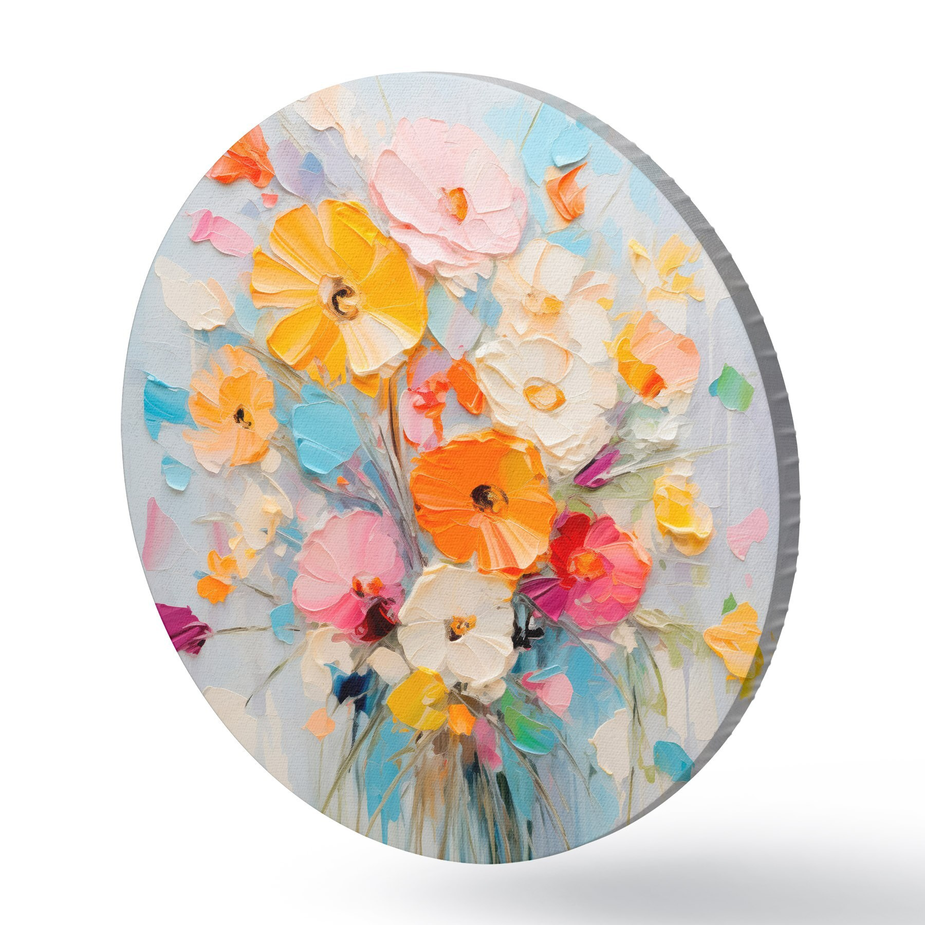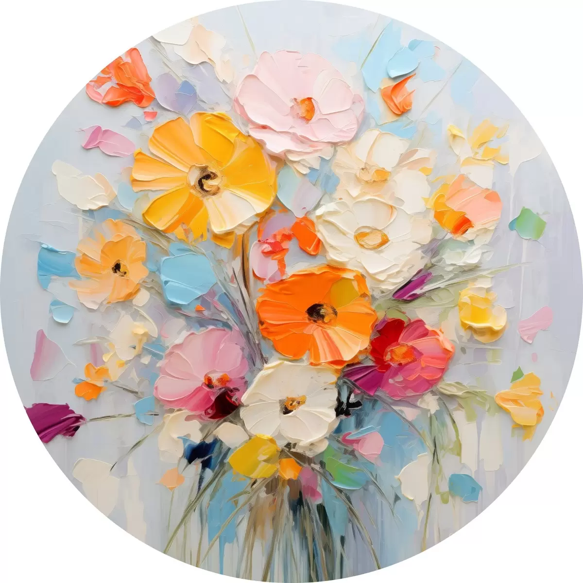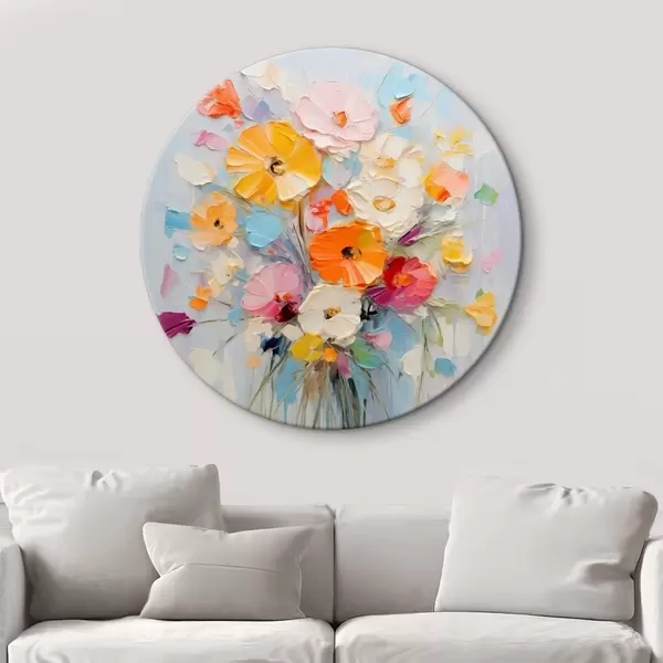 Apaļas gleznas Ziedu motīvs: abstrakts pušķis pasteļtoņos r45599