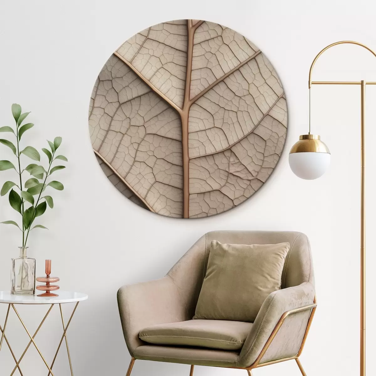 Apaļas gleznas Sausa lapa ar dzīslām r45604