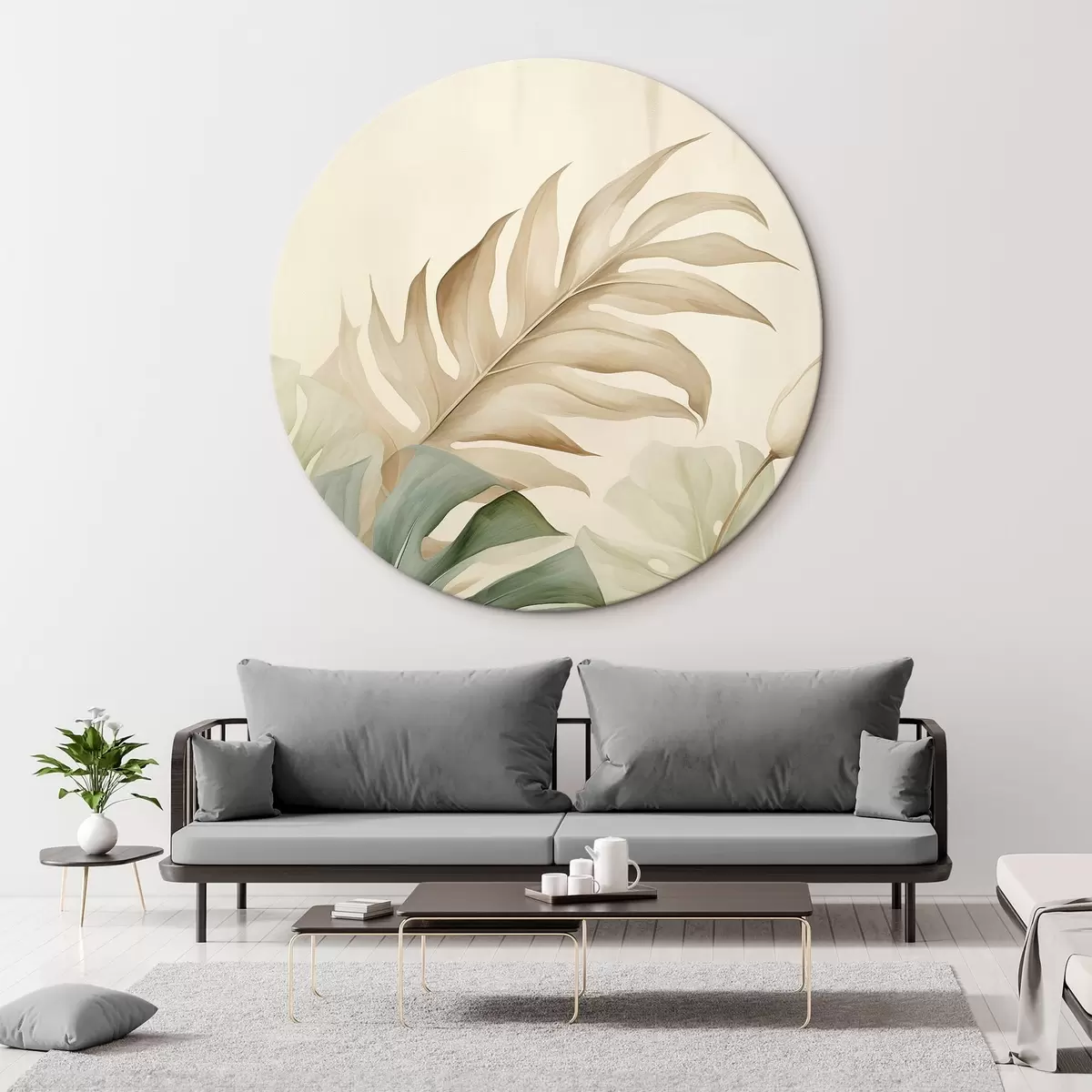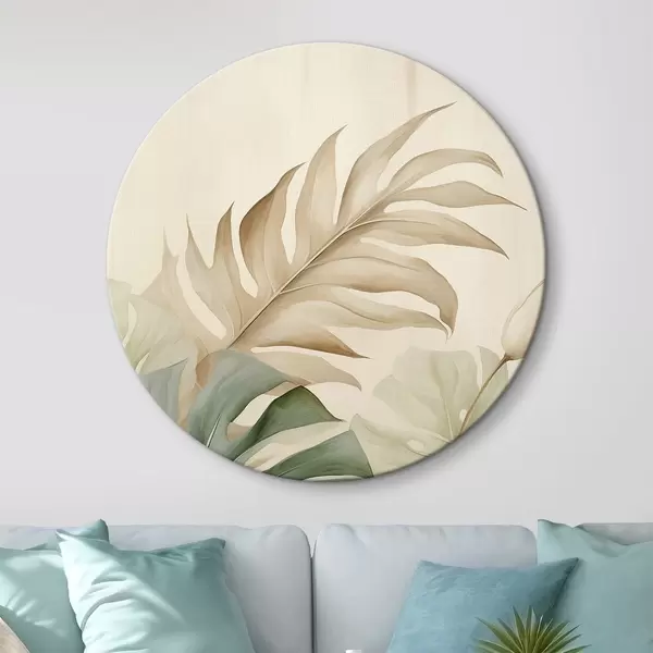 Apaļas gleznas Tropu lapas uz gaiša fona r45617