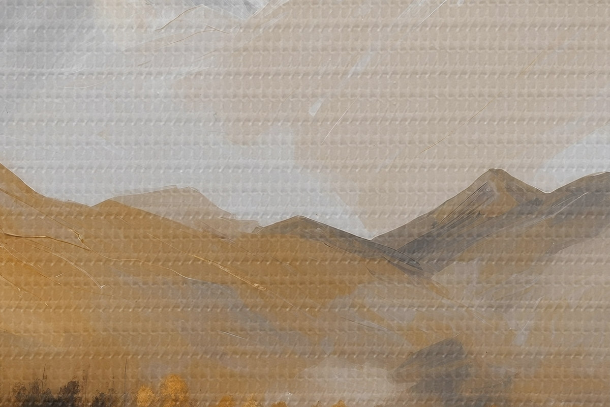 Smalkais diegu pinums uz šī audekla atgādina profesionālu mākslinieku audeklu virsmu.