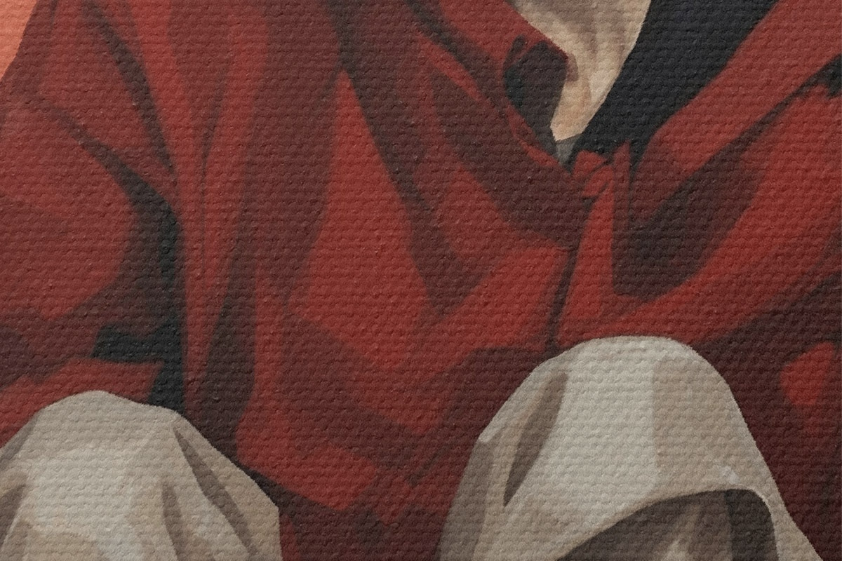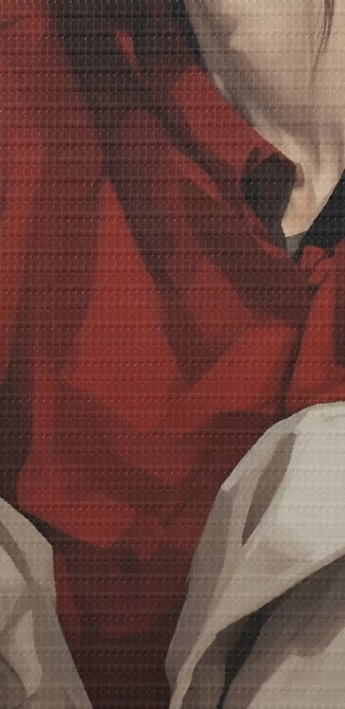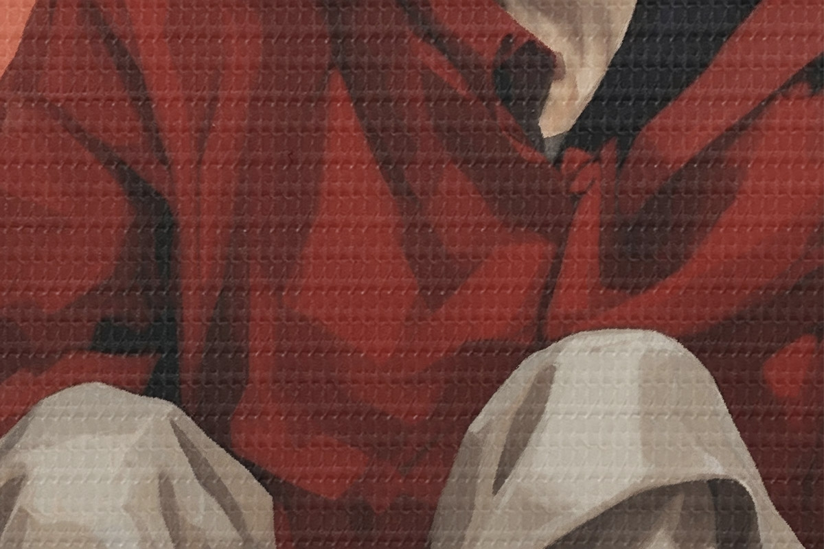 Smalkais diegu pinums uz šī audekla atgādina profesionālu mākslinieku audeklu virsmu.