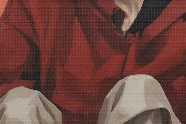 Lai izstieptu audeklu uz nestuvēm, nebojājot attēlu, mēs izmantojam spoguļattēlu.