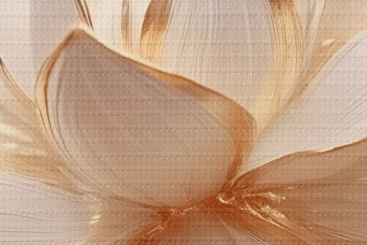 Smalkais diegu pinums uz šī audekla atgādina profesionālu mākslinieku audeklu virsmu.
