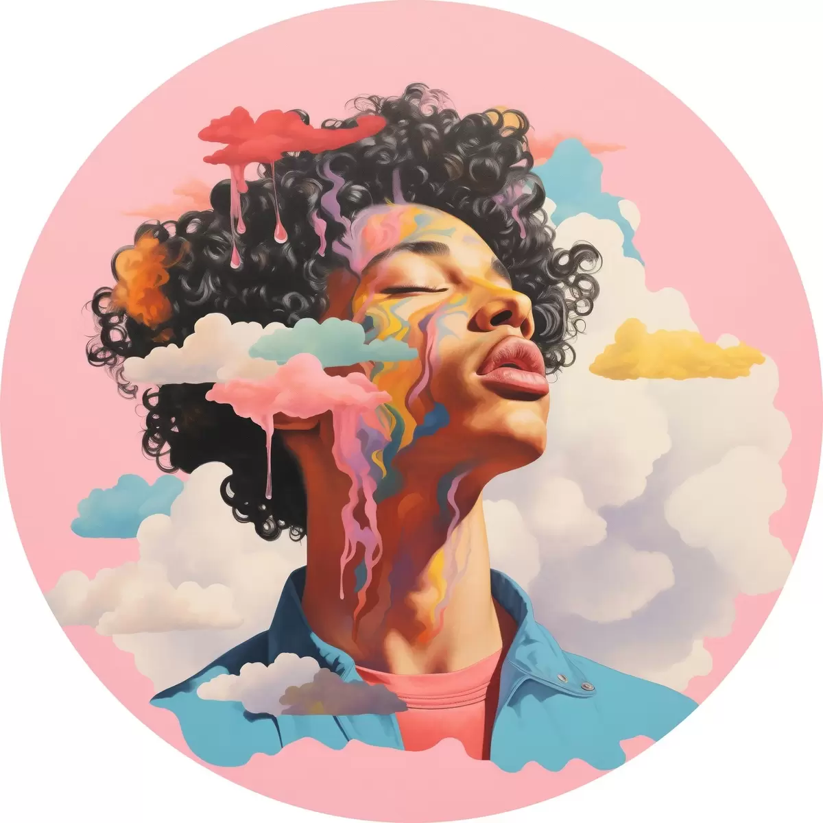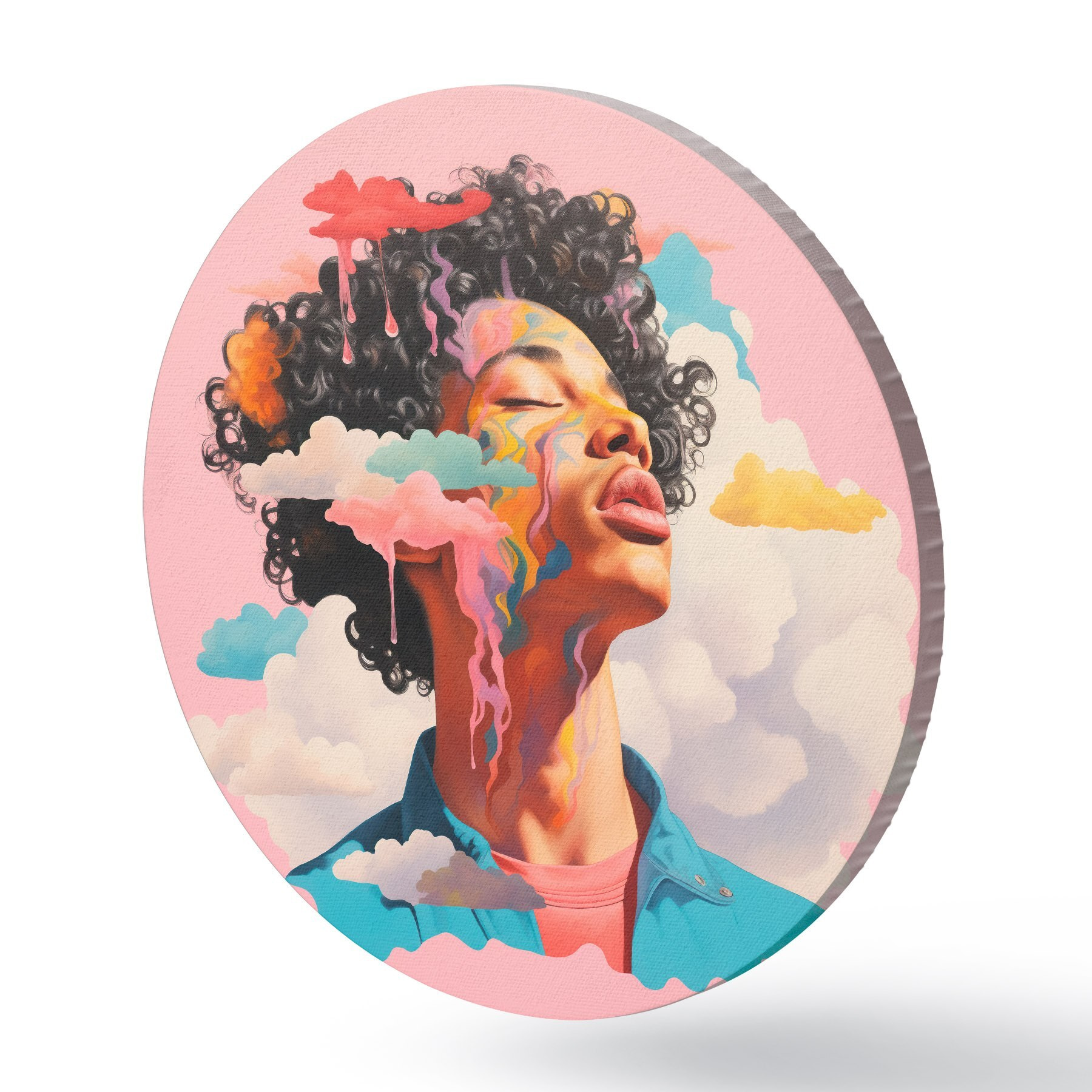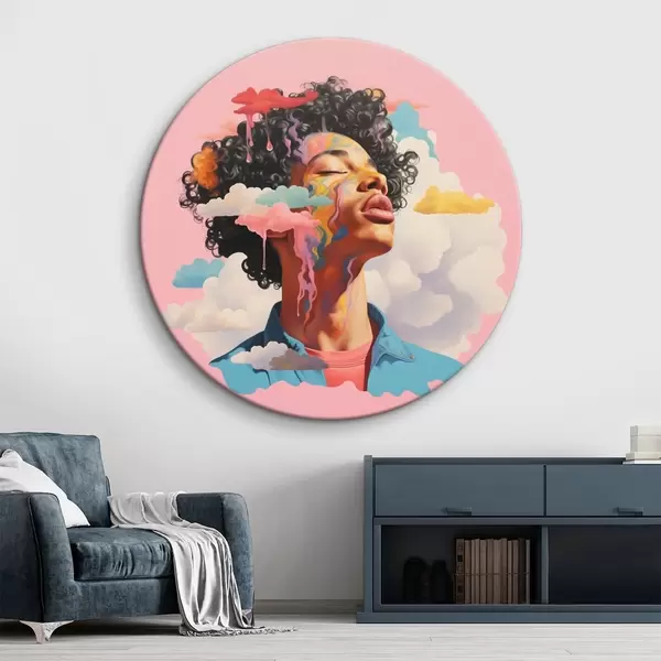 Apaļas gleznas Sapņotājs mākoņos akvareļu stilā r45636