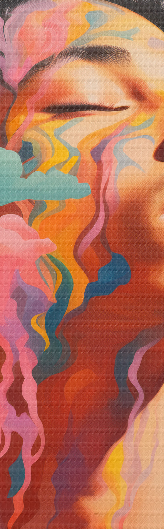 Smalkais diegu pinums uz šī audekla atgādina profesionālu mākslinieku audeklu virsmu.