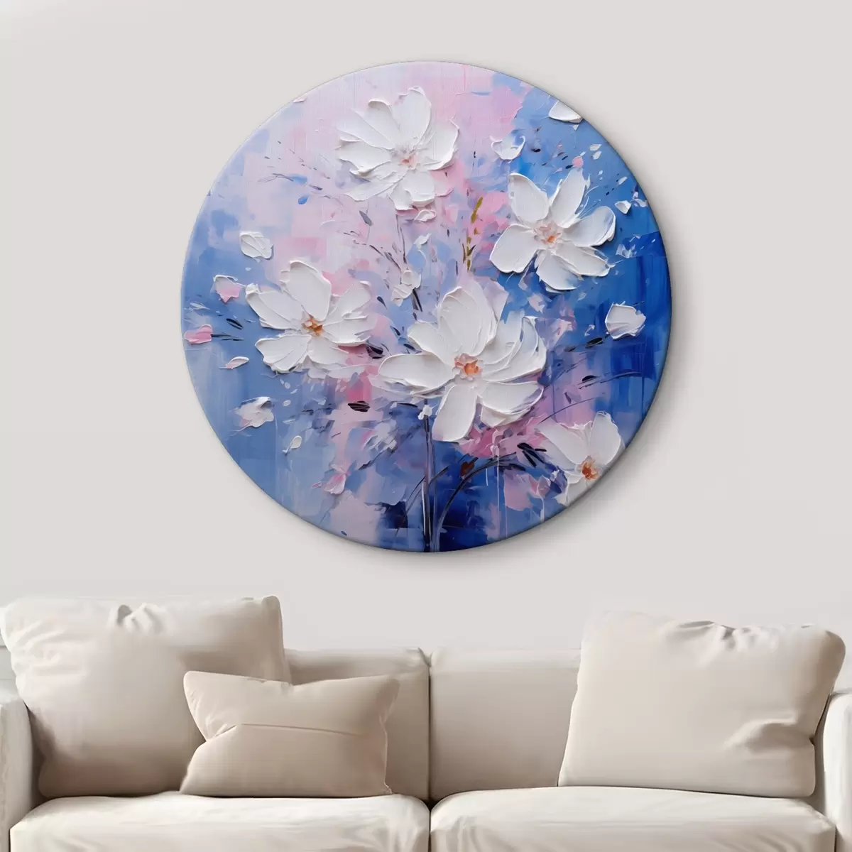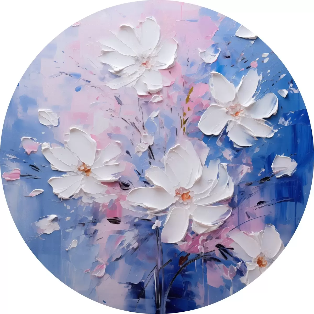 Apaļas gleznas Apjomīgi ziedi uz zila fona impasto stilā r45648
