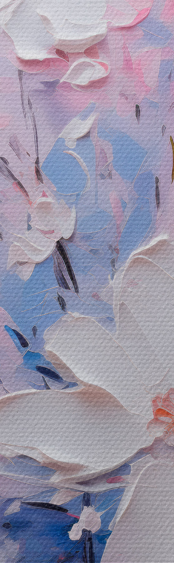 Attēls Apjomīgi ziedi uz zila fona impasto stilā Nr r45648