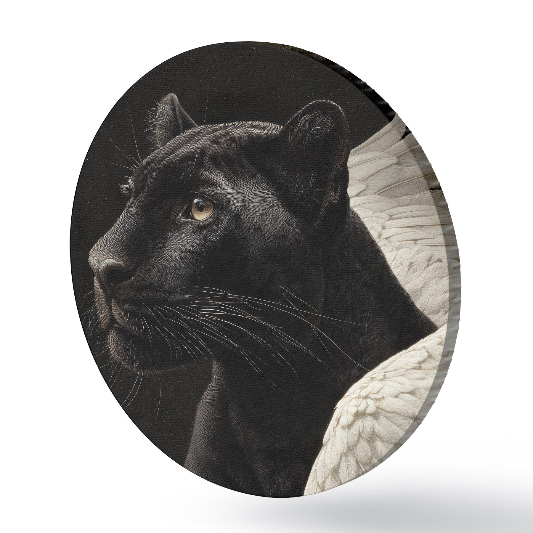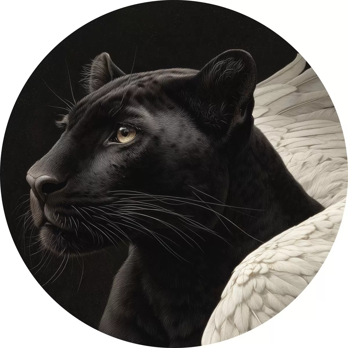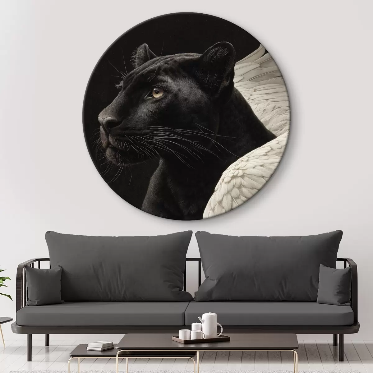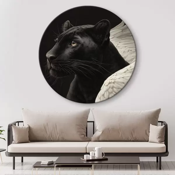 Apaļas gleznas Melnā pantera ar spārniem fantāzijas stilā r45653