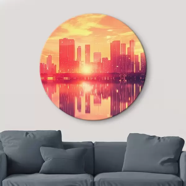Apaļas gleznas Pasūtījums mūsdienīgas pilsētas fonā r45659