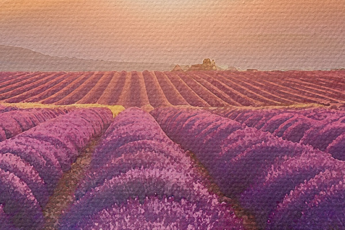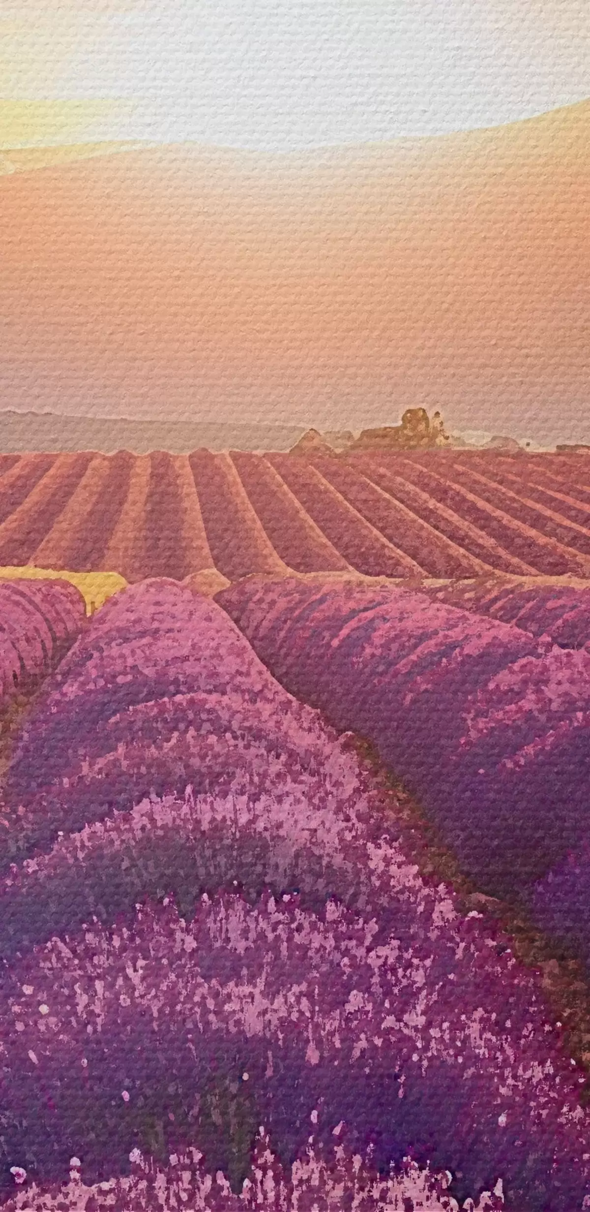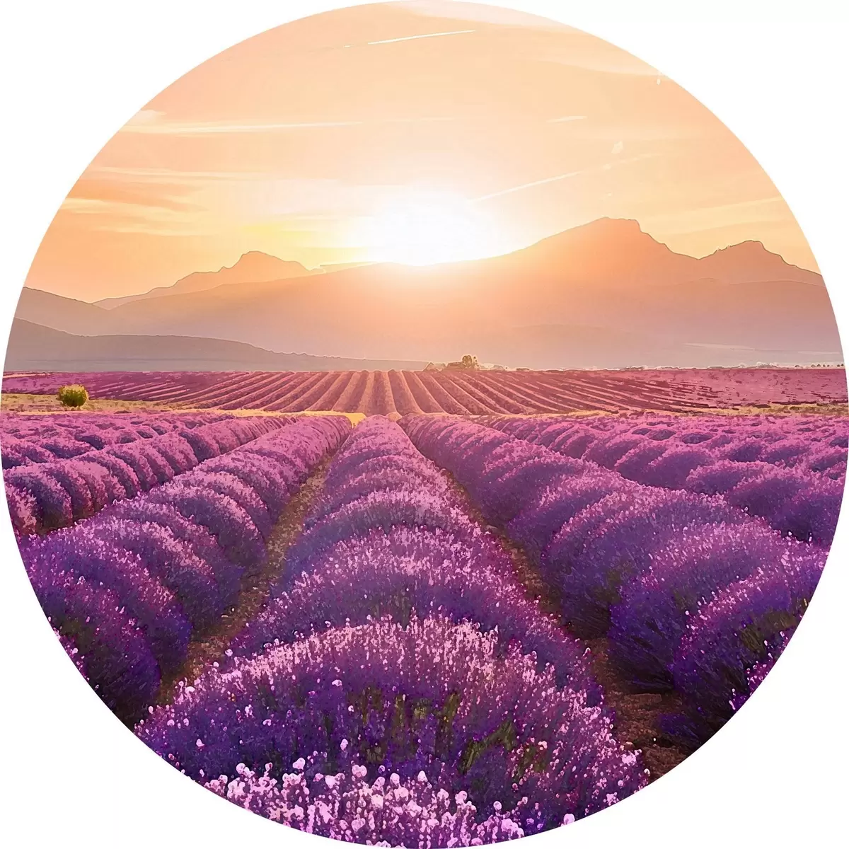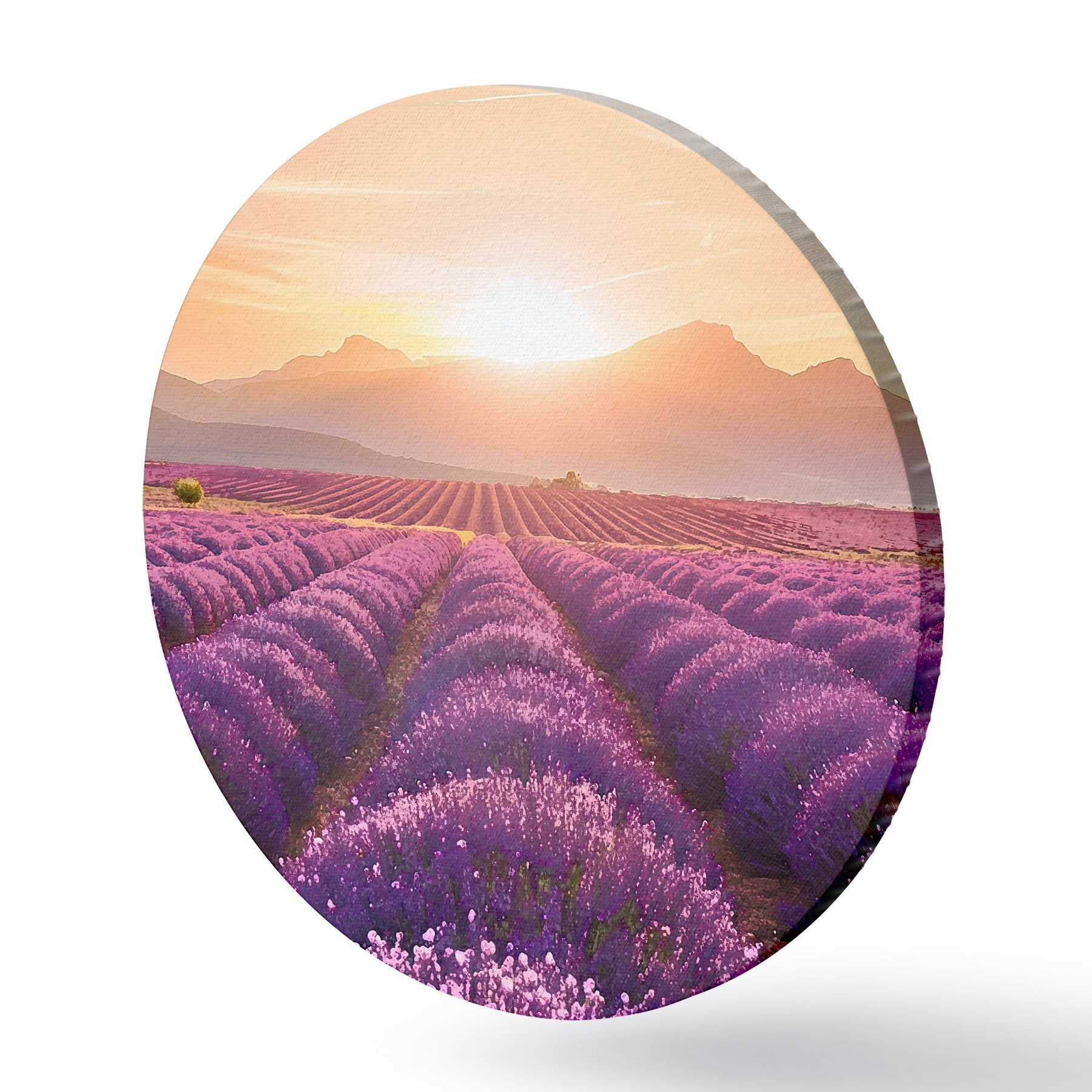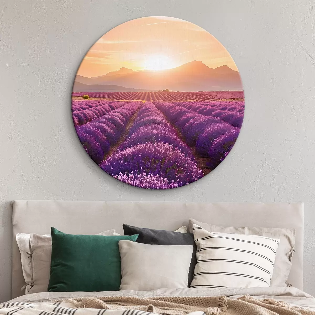Apaļas gleznas Saulriets lavandas laukā r45663
