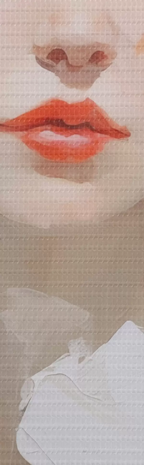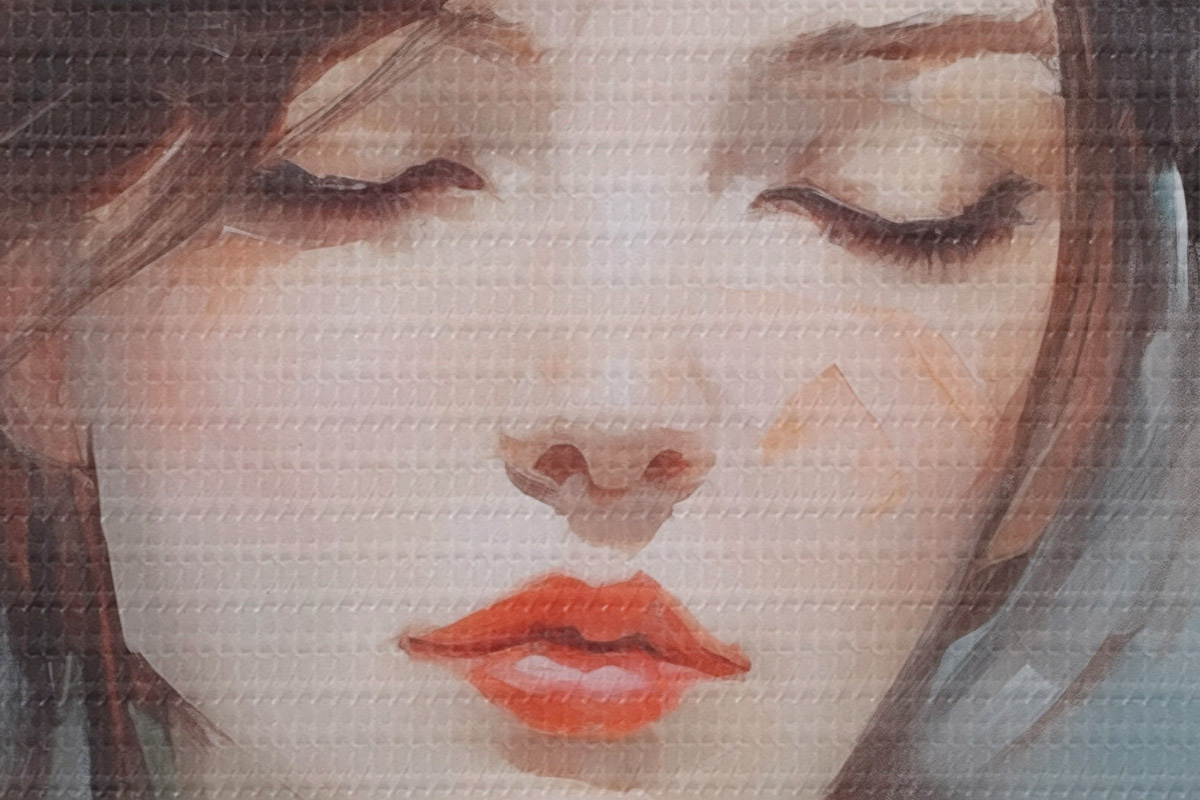 Smalkais diegu pinums uz šī audekla atgādina profesionālu mākslinieku audeklu virsmu.