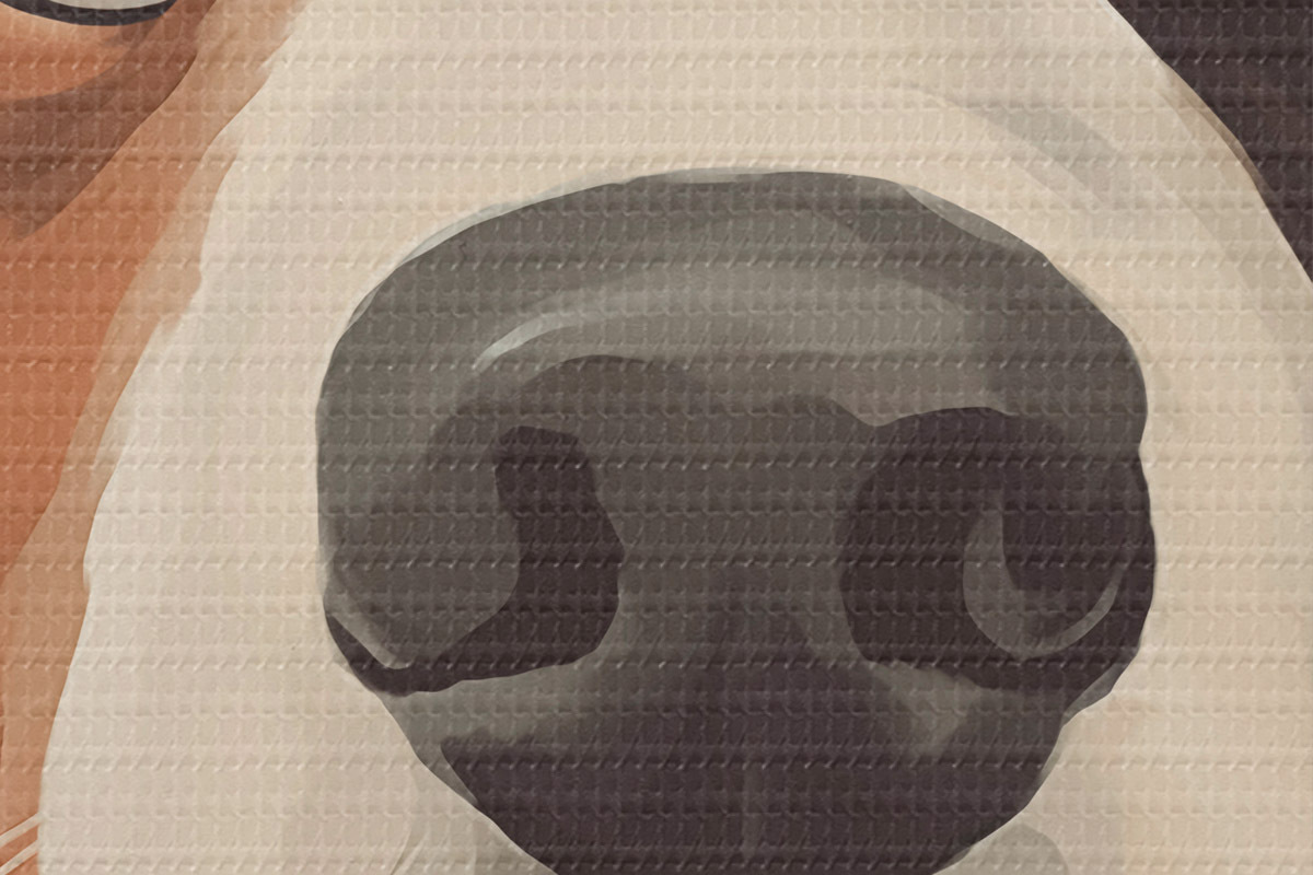 Smalkais diegu pinums uz šī audekla atgādina profesionālu mākslinieku audeklu virsmu.