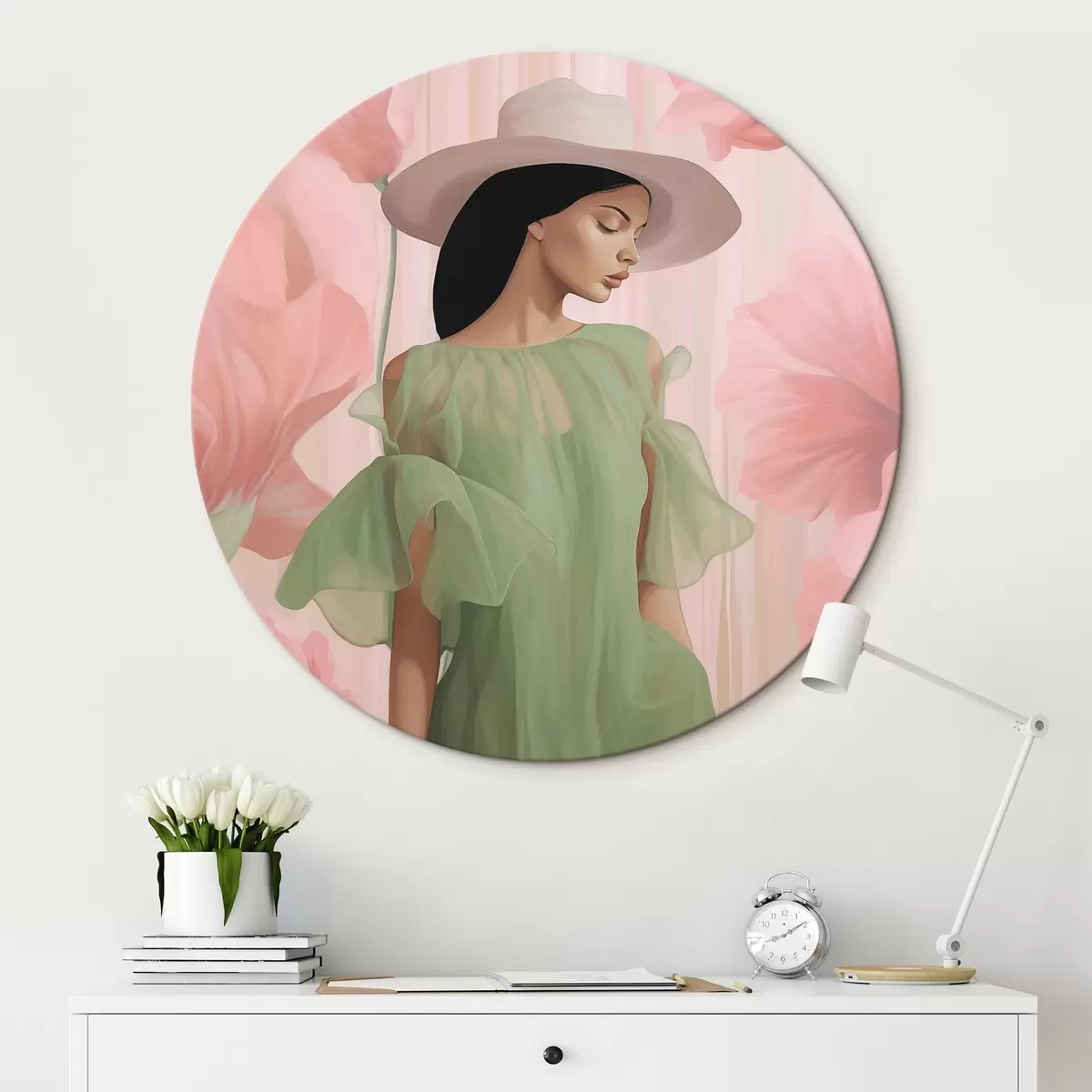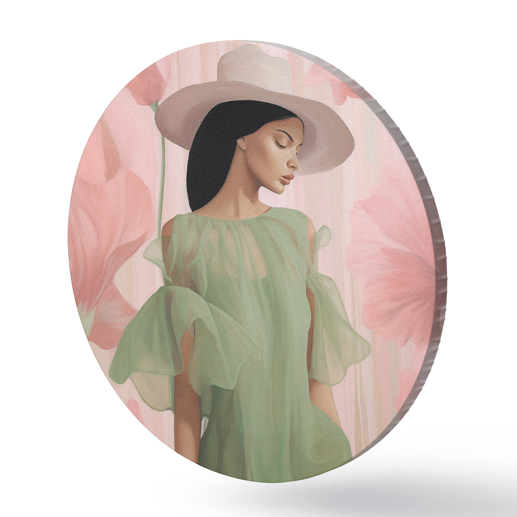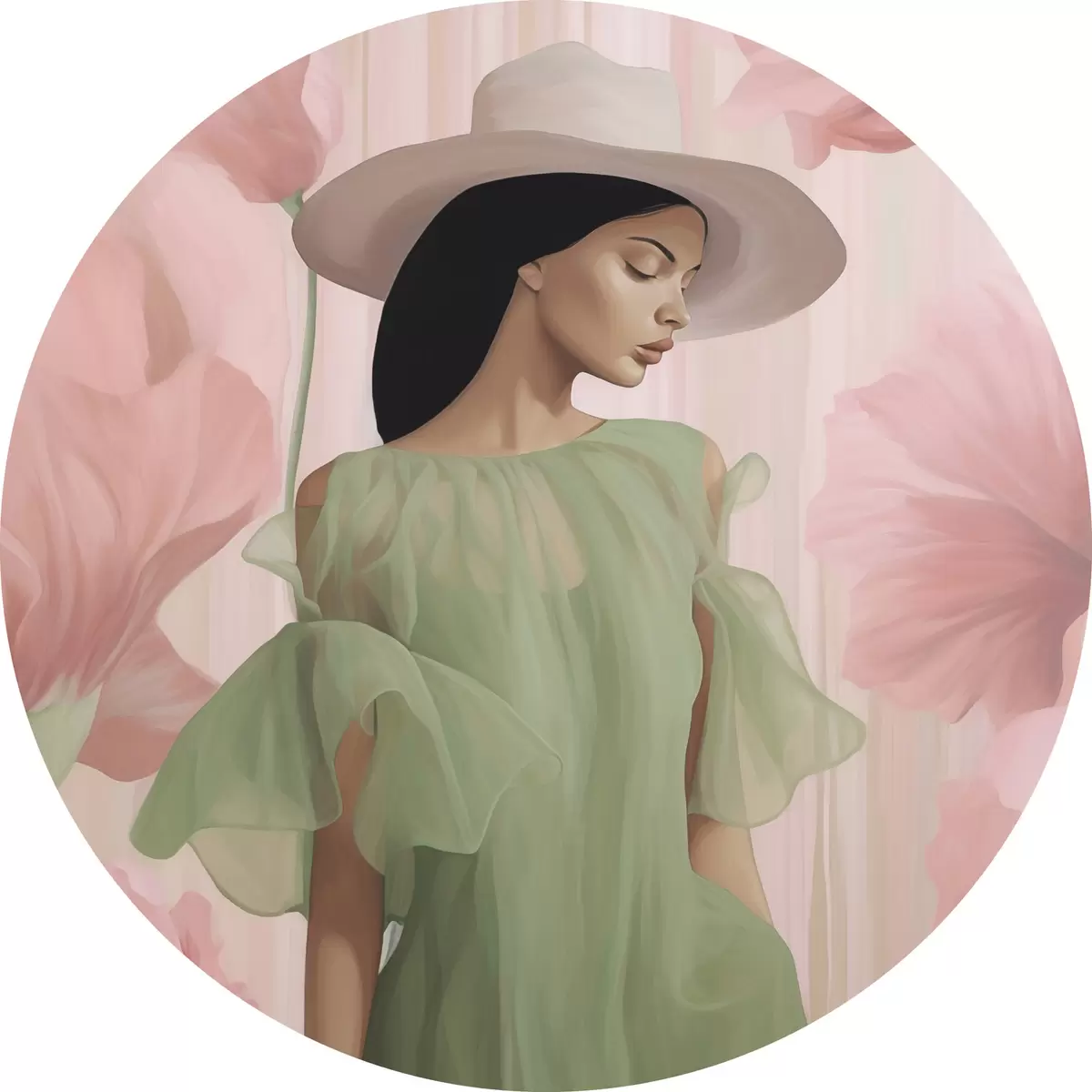 Apaļas gleznas Meitene cepurē starp ziediem r45678