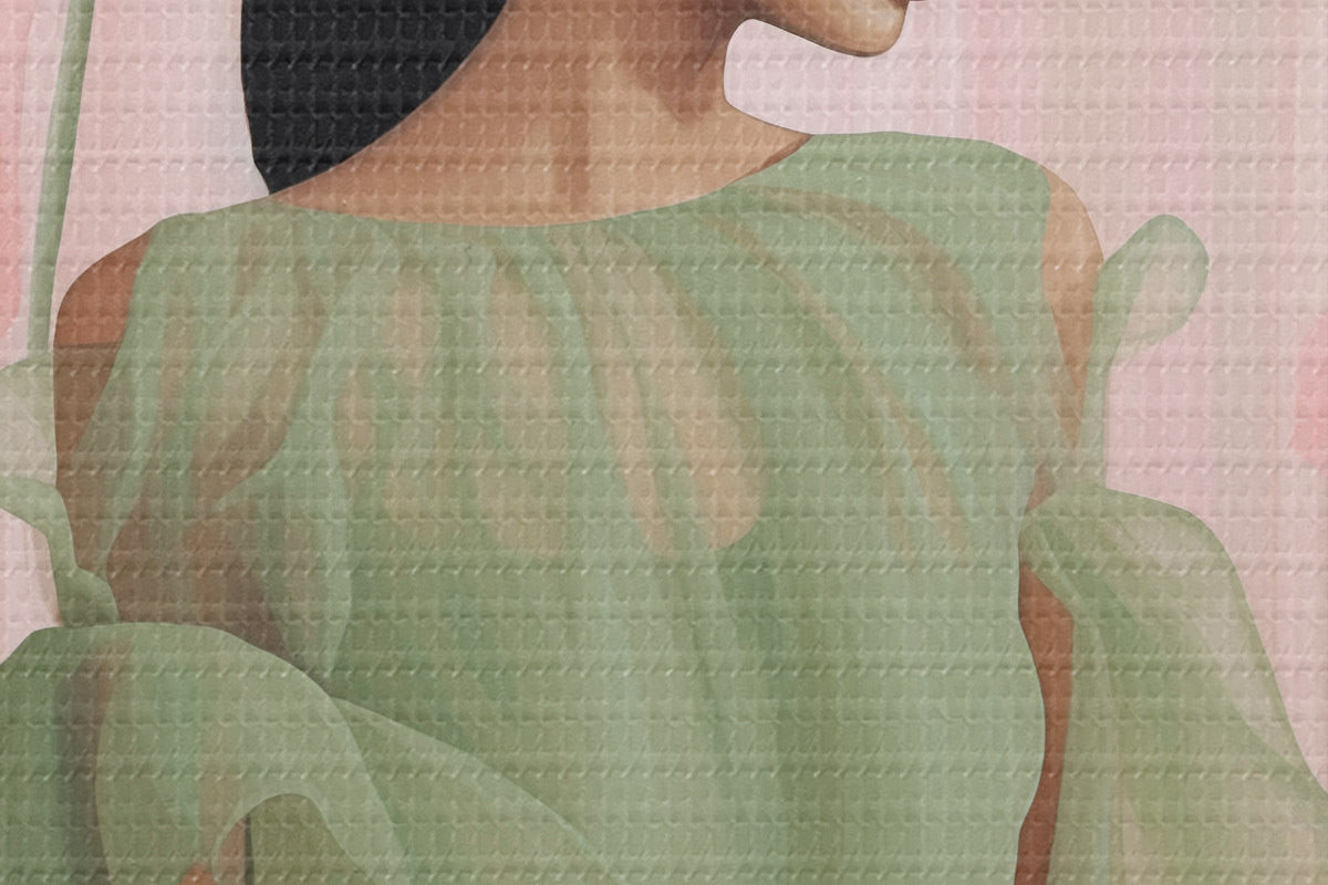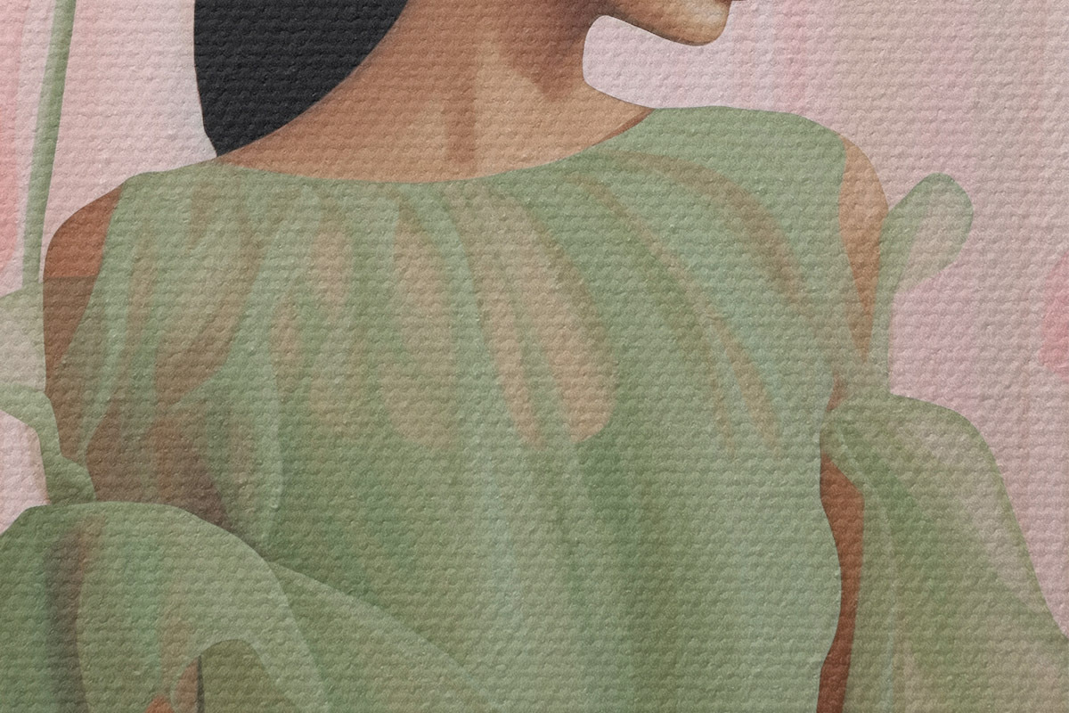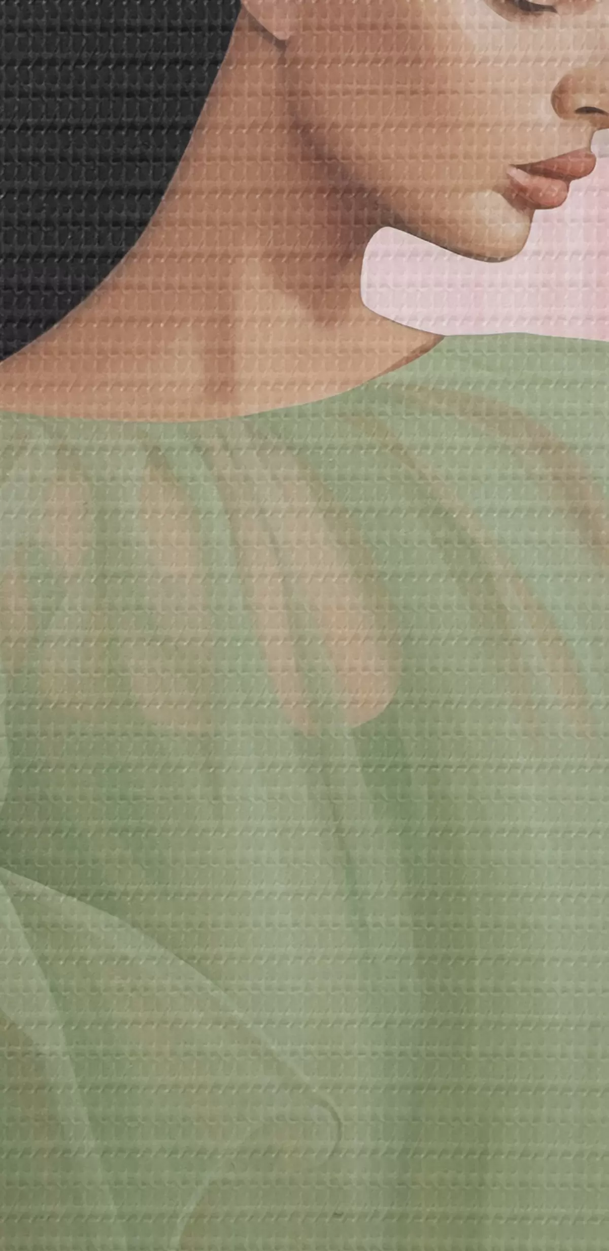 Smalkais diegu pinums uz šī audekla atgādina profesionālu mākslinieku audeklu virsmu.