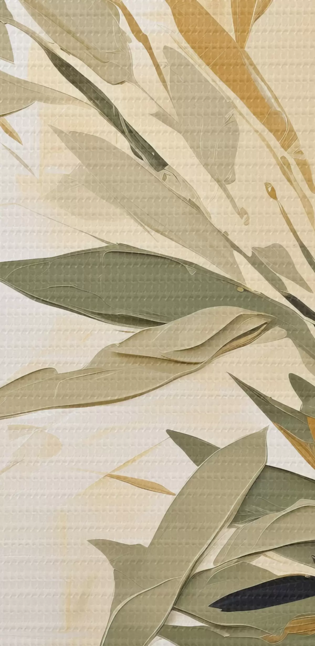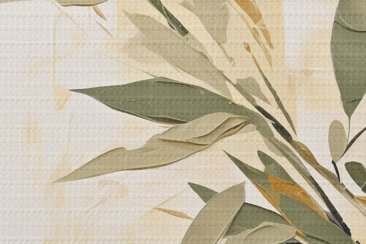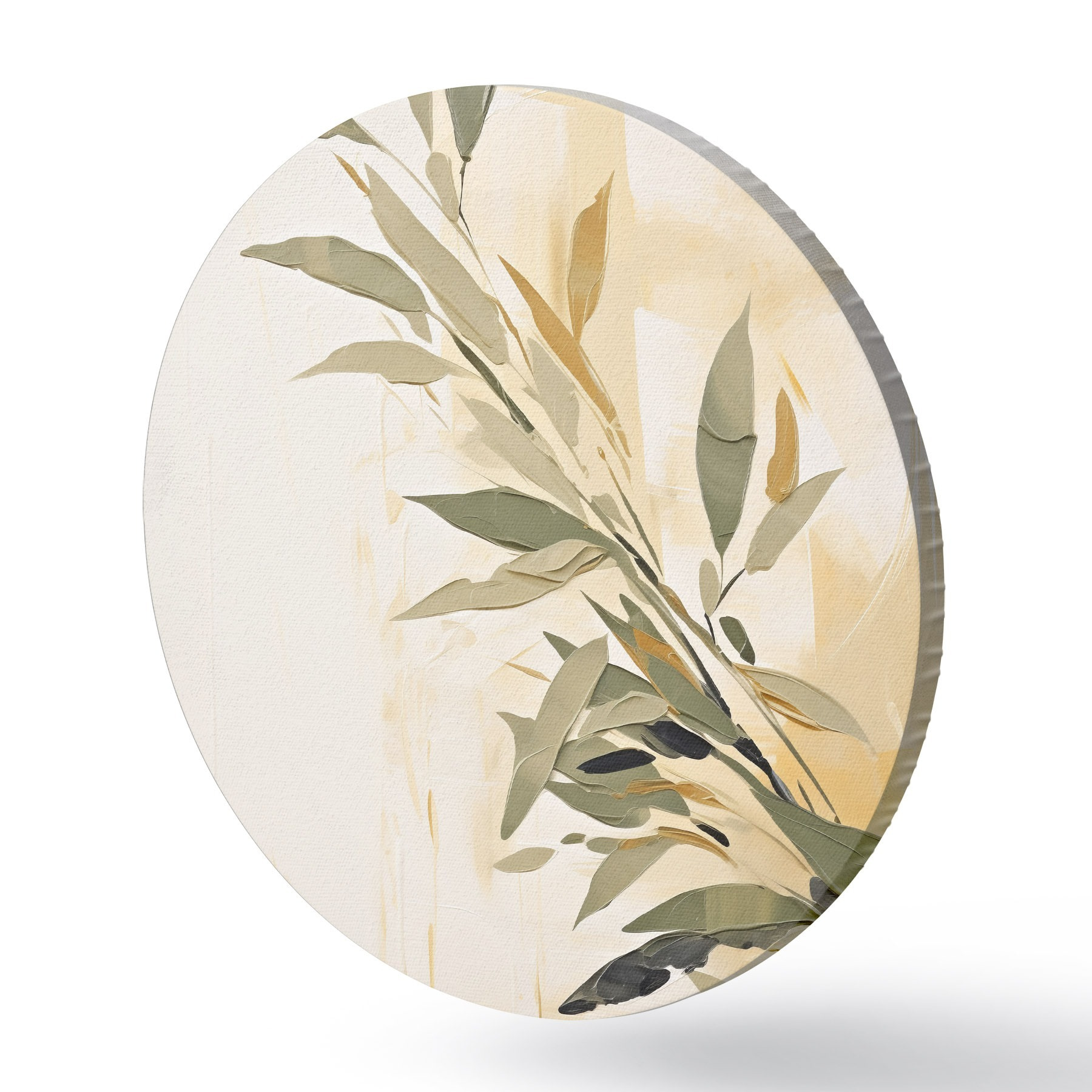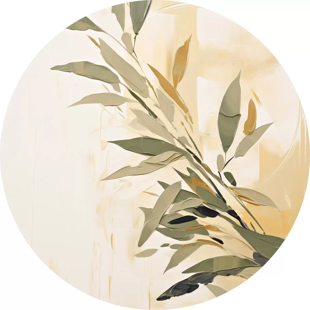 Apaļas gleznas Botāniskais zars ar zaļām lapām uz silta fona r45690