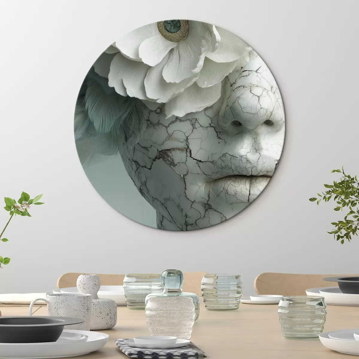 Apaļas gleznas marmora meitenes seja ar ziedu r45709