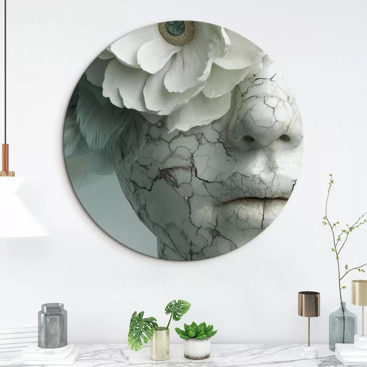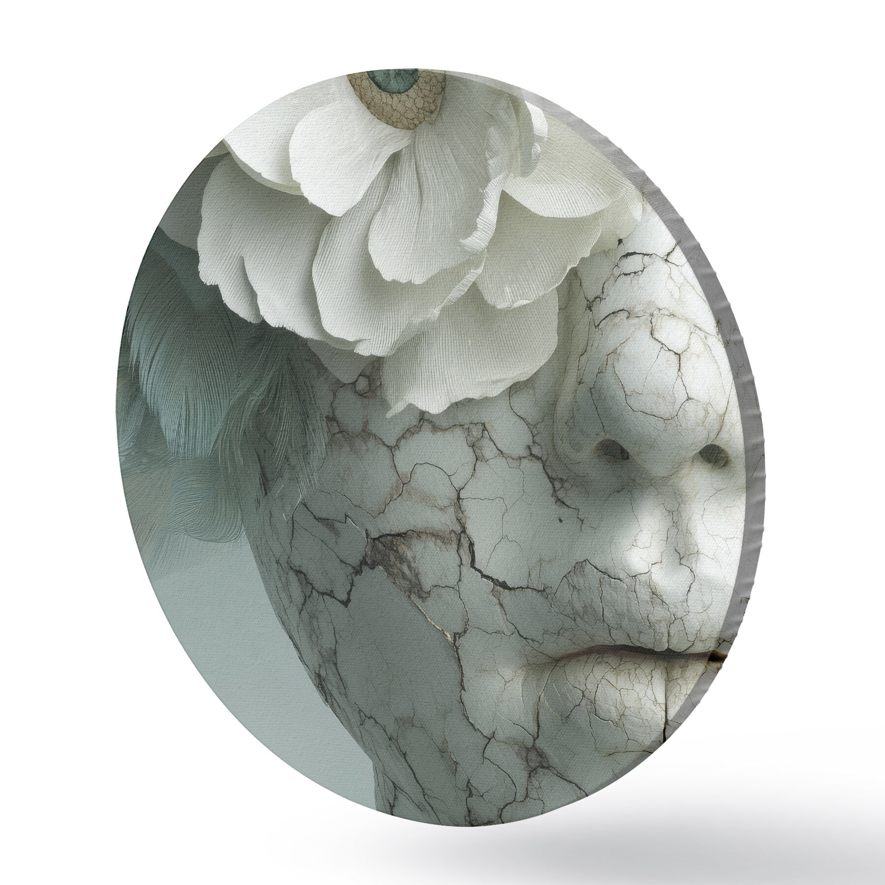 Apaļas gleznas marmora meitenes seja ar ziedu r45709